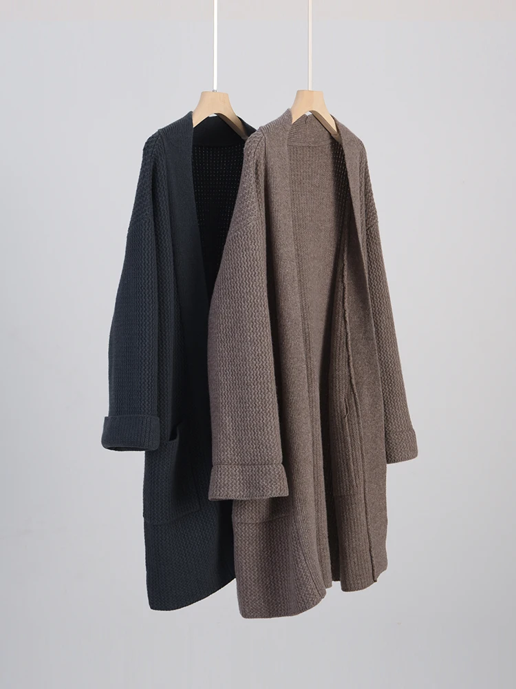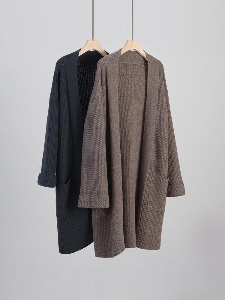 High Quality Women Cashmere Long Cardigan Autumn Winter Thick Casual Loose Style Sweater 100% Merino Wool Knitwear Korean Tops
