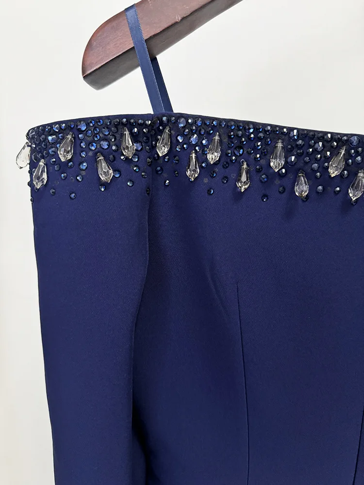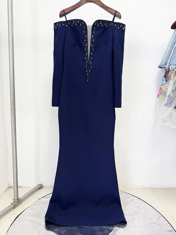 HIGH STREET Newest 2025 Designer Vestido Women's Diamonds Beaded Slash Neck Off The Shoulders Long Maxi Dress