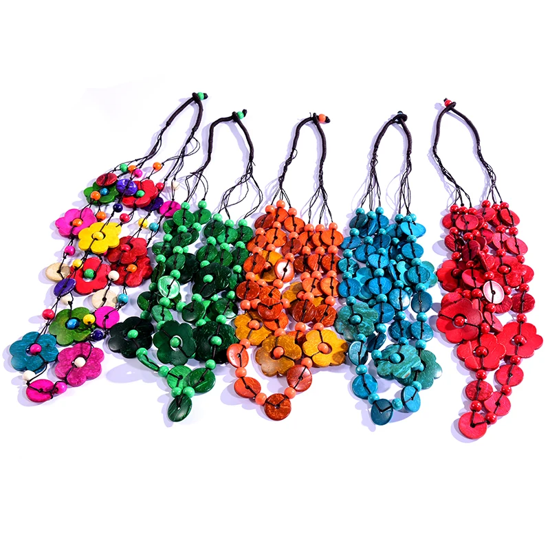 Colliers en perles de bois et coquillages de noix de coco pour femmes, bijoux ethniques bohèmes, longs colliers faits à la main, offre spéciale
