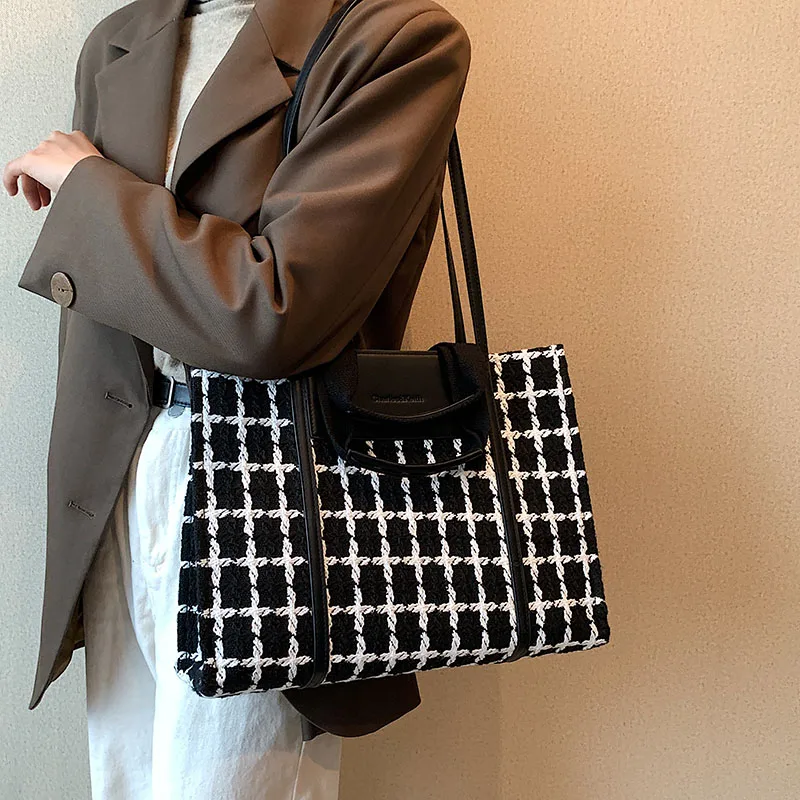 Sacs à main à carreaux tendance pour jeunes femmes, grands fourre-tout, sacs de créateurs