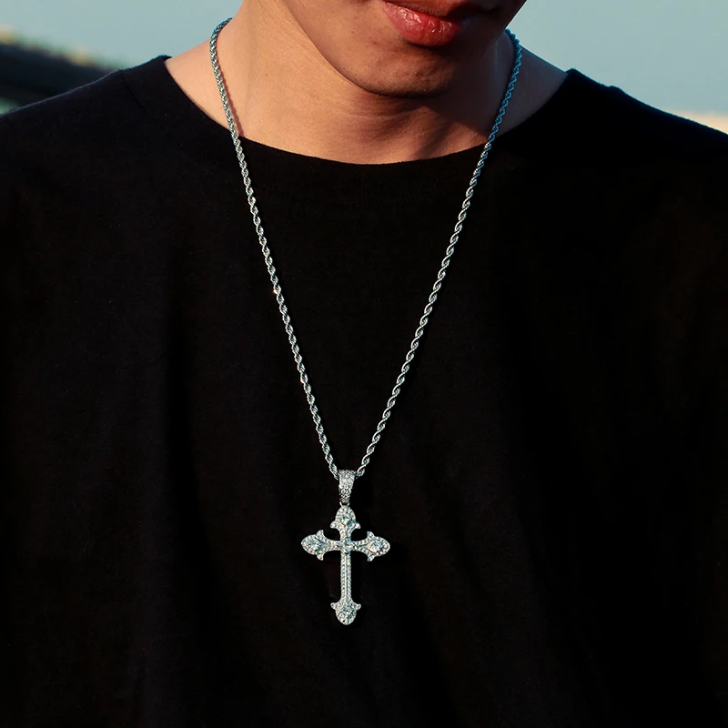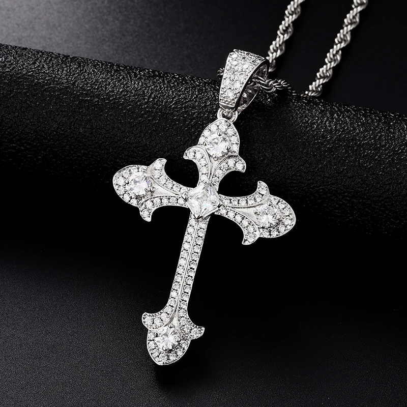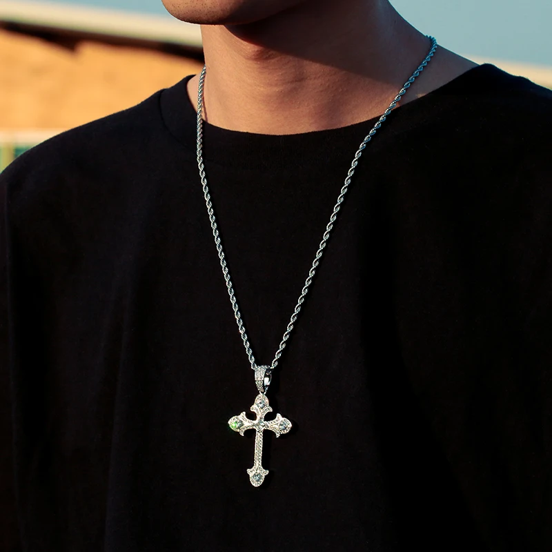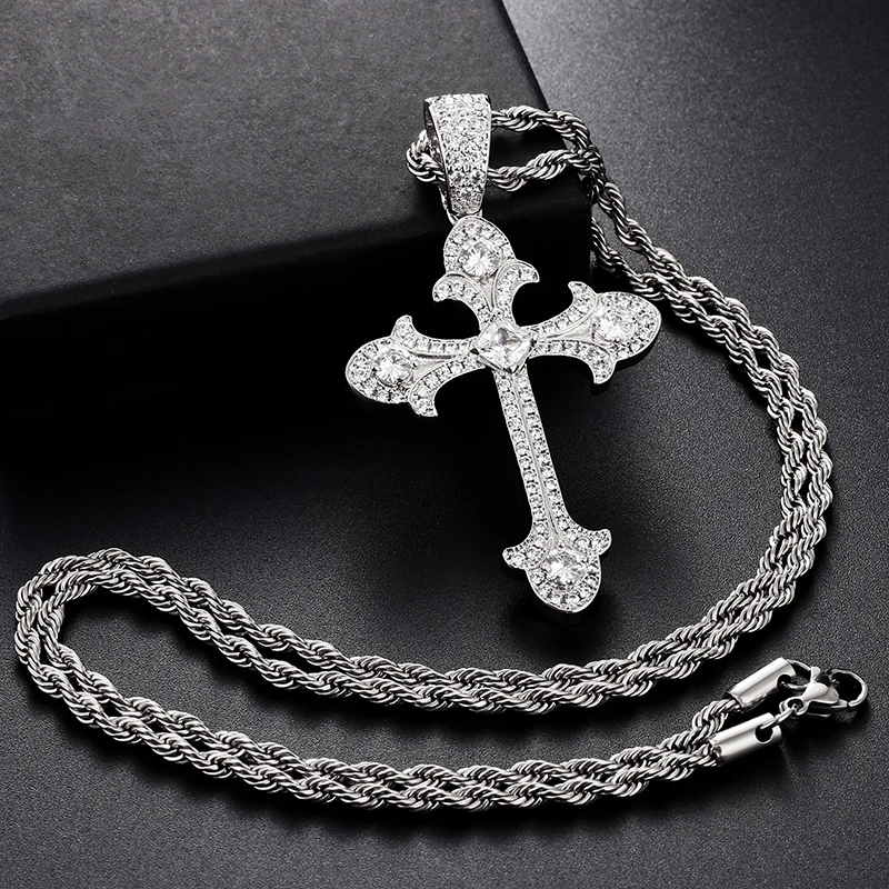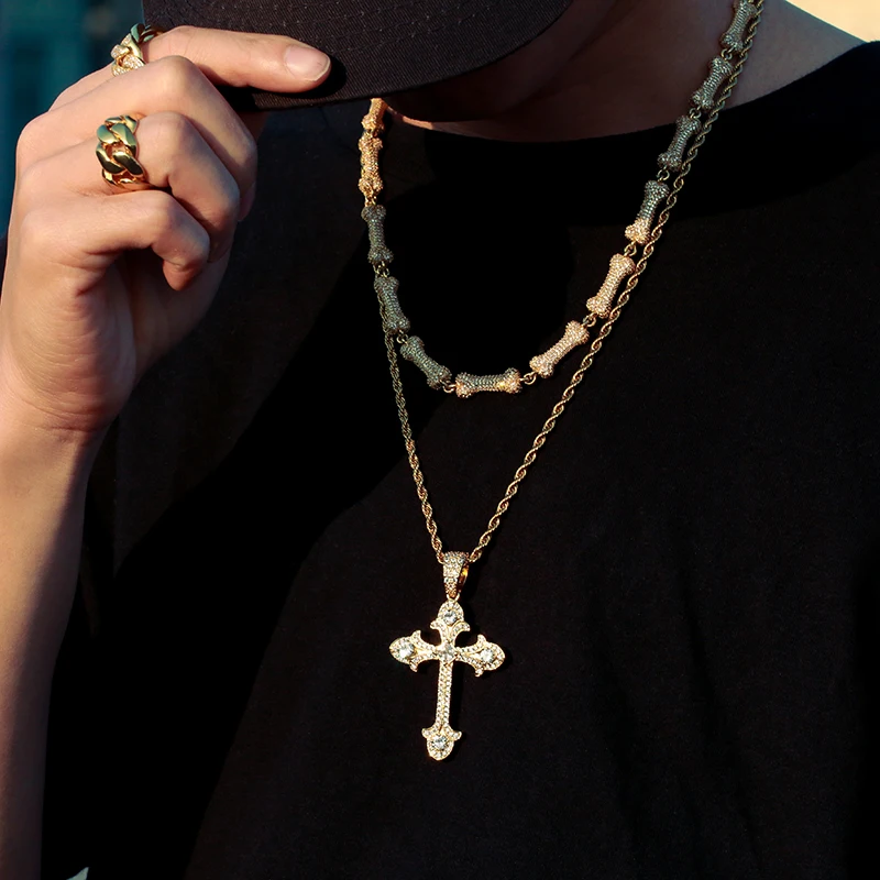 Pendentif croix populaire en or plaqué or blanc, bijoux tendance pour hommes et femmes
