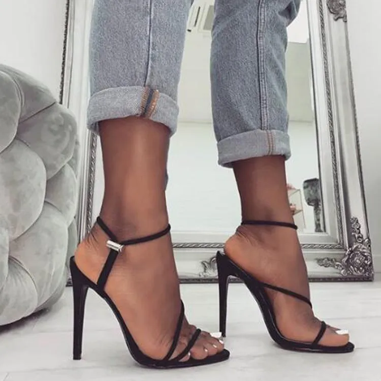Vente chaude sexe pour fille boucle sangle fine sandale à talon haut