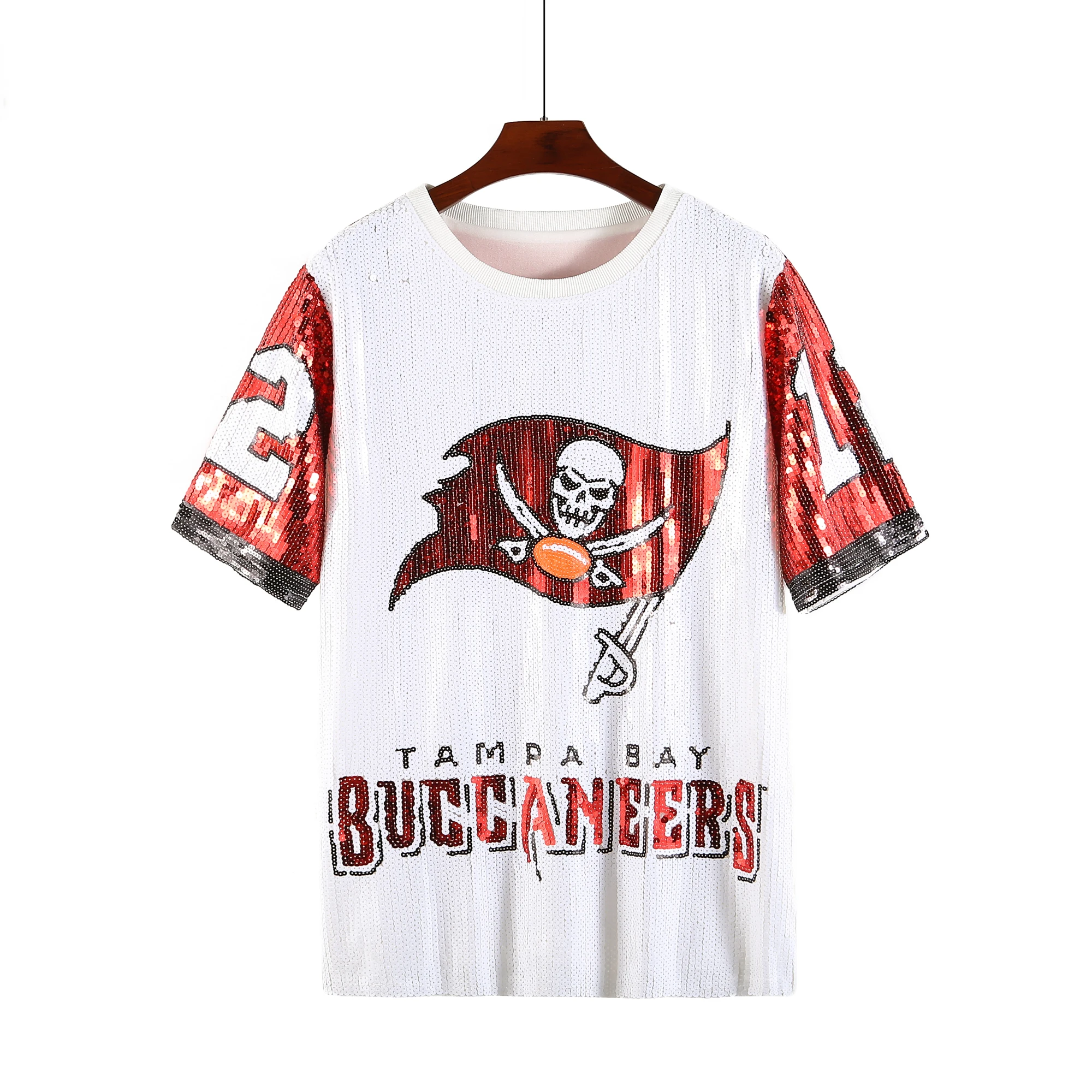 Vente chaude Style Robes de soirée NFL Buccaneers conception mode robe décontractée Femmes paillettes t-shirt robe