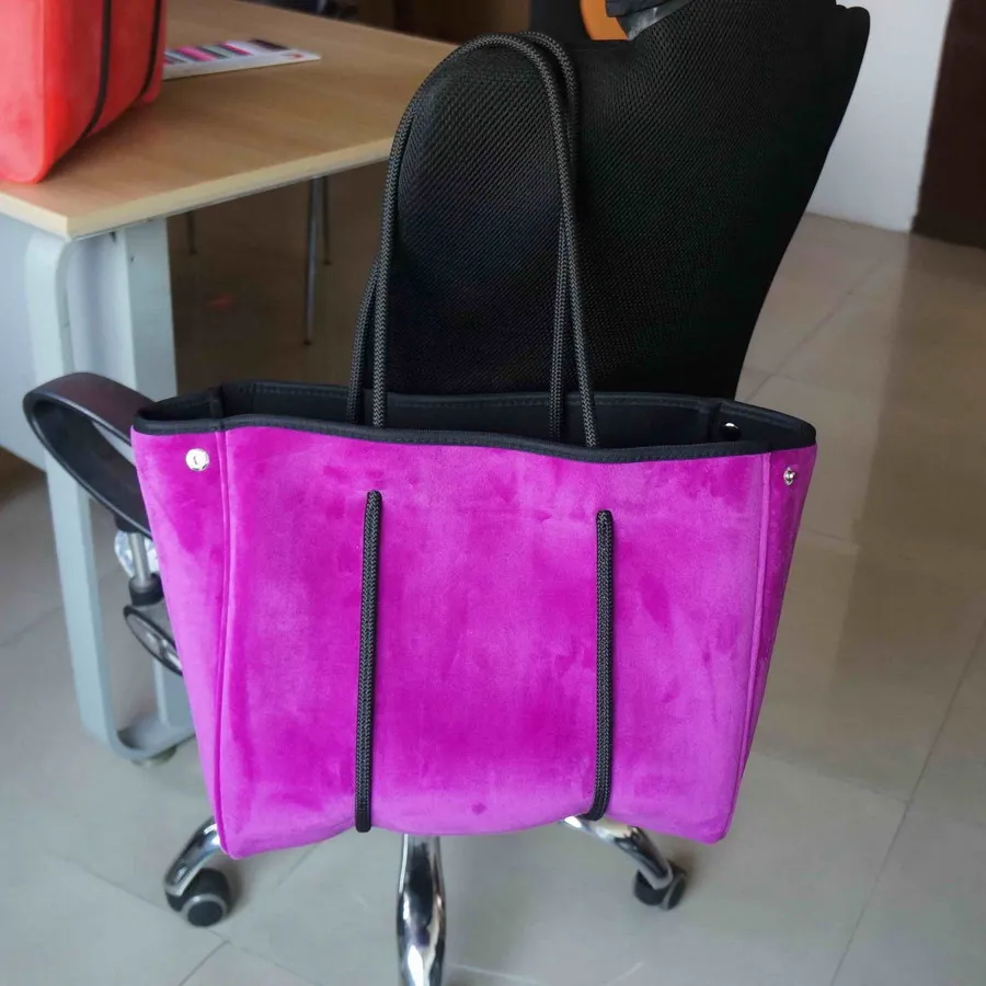 Sac à main tendance en velours pour femme, fourre-tout de plage en néoprène, vente en gros