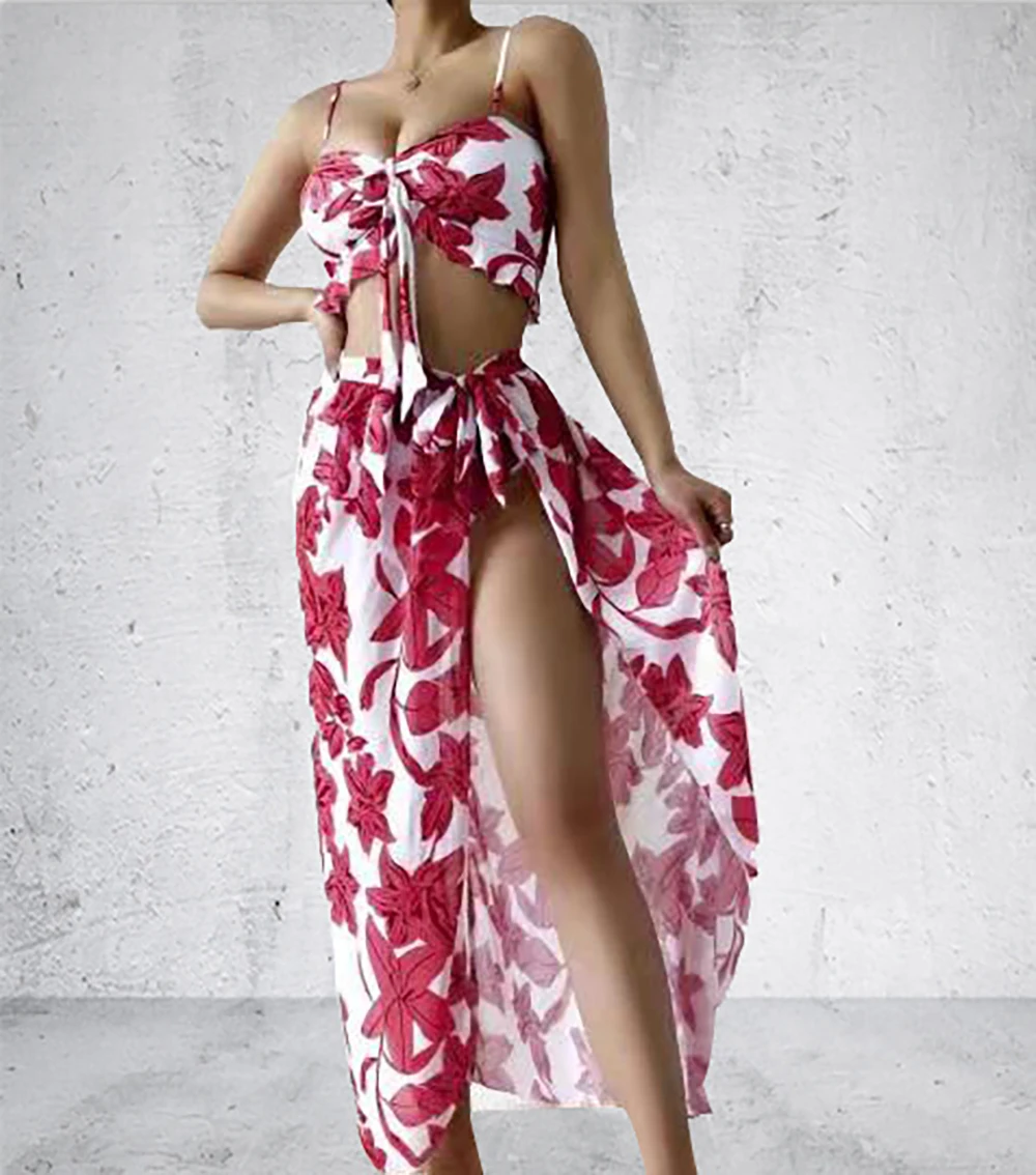 Maillot de bain 3 pièces pour femmes, modèle tendance 2023, bikini push-up, sarong, robe longue en maille, cover-up