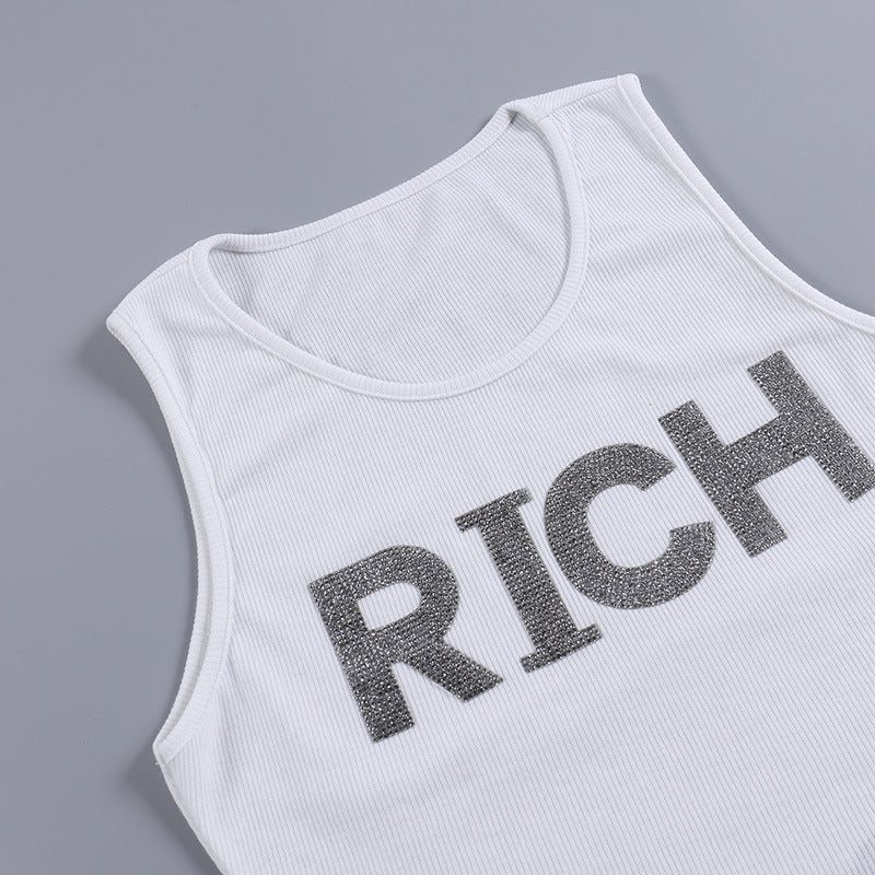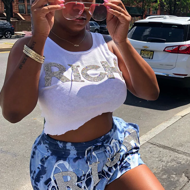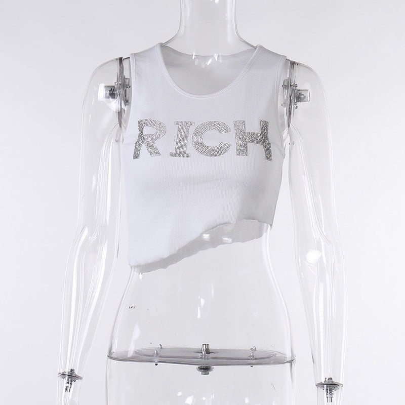 Débardeur court sexy sans manches pour femme, imprimé diamants, tendance été 2023