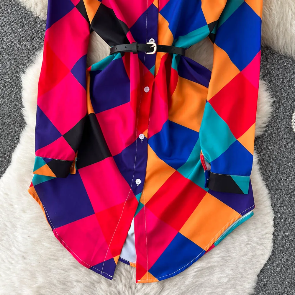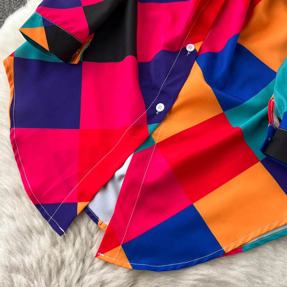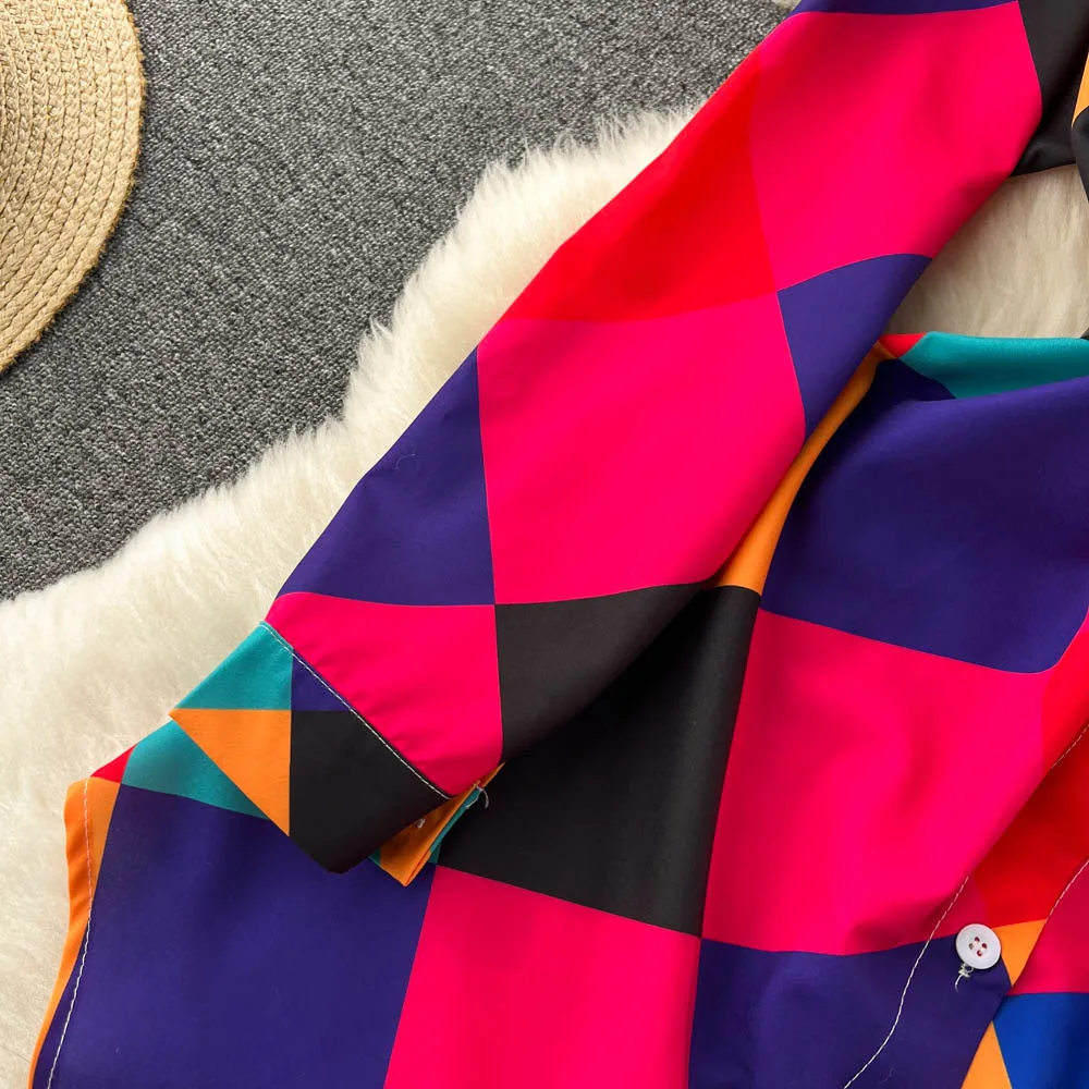 Robe chemise fendue à imprimé géométrique pour femme, décontractée, col polo, style plage, irrégulière, longue, tendance