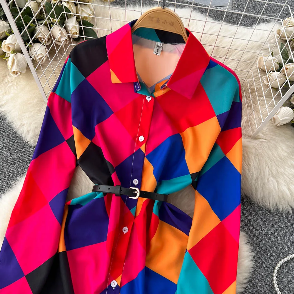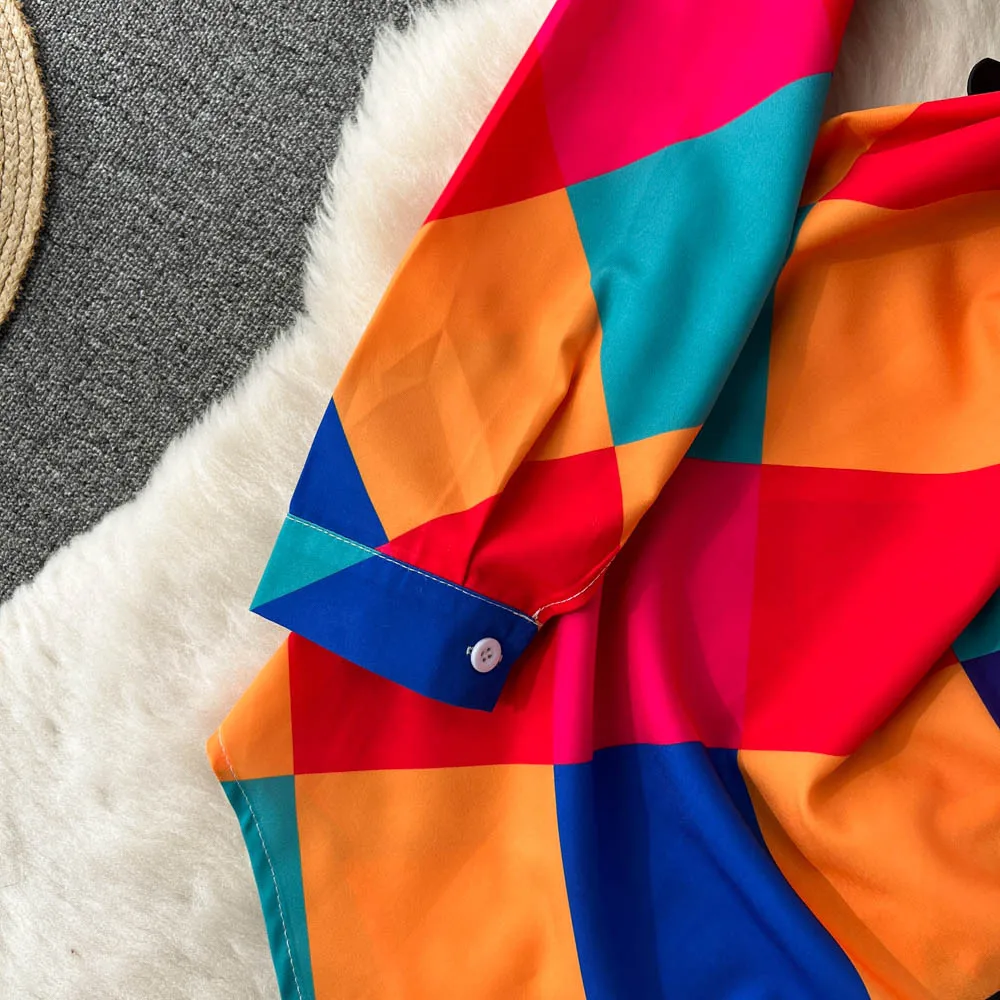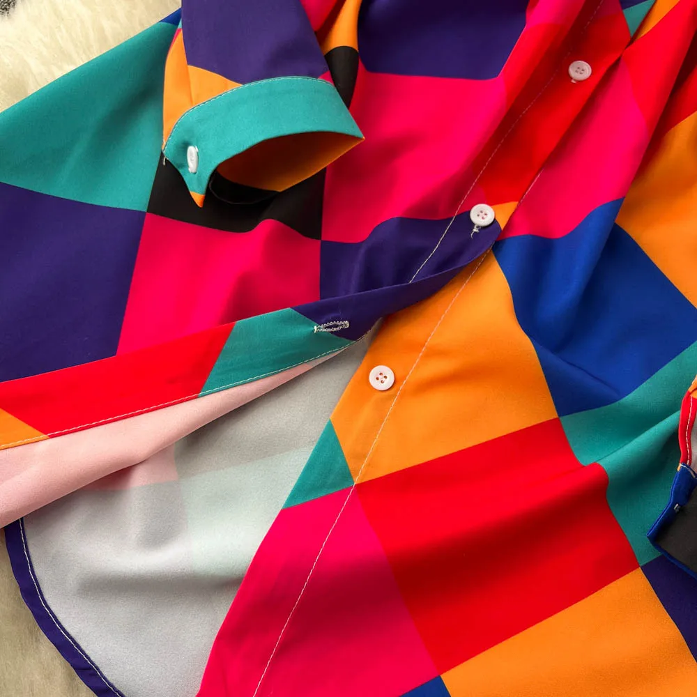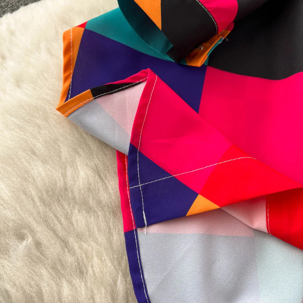 Robe chemise fendue à imprimé géométrique pour femme, décontractée, col polo, style plage, irrégulière, longue, tendance