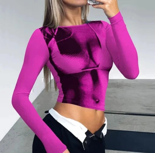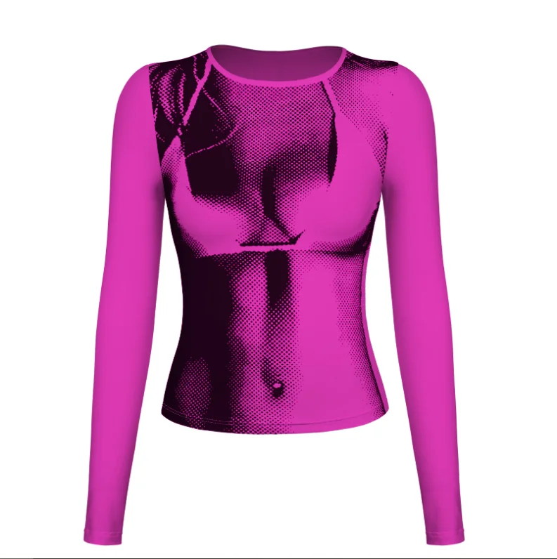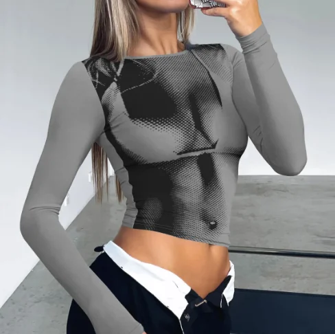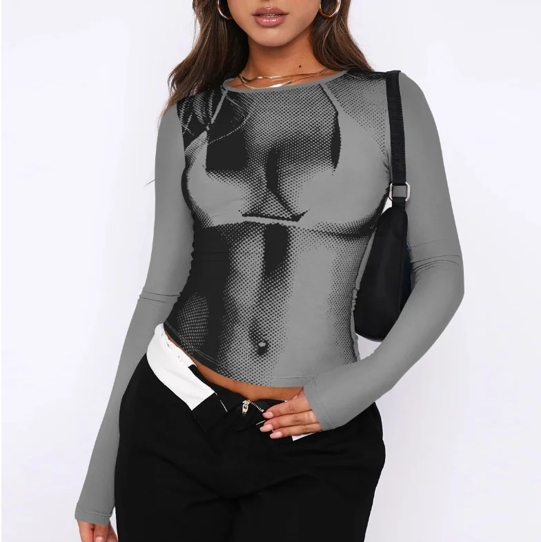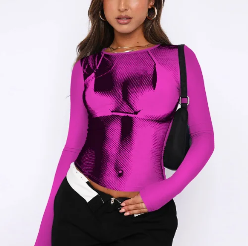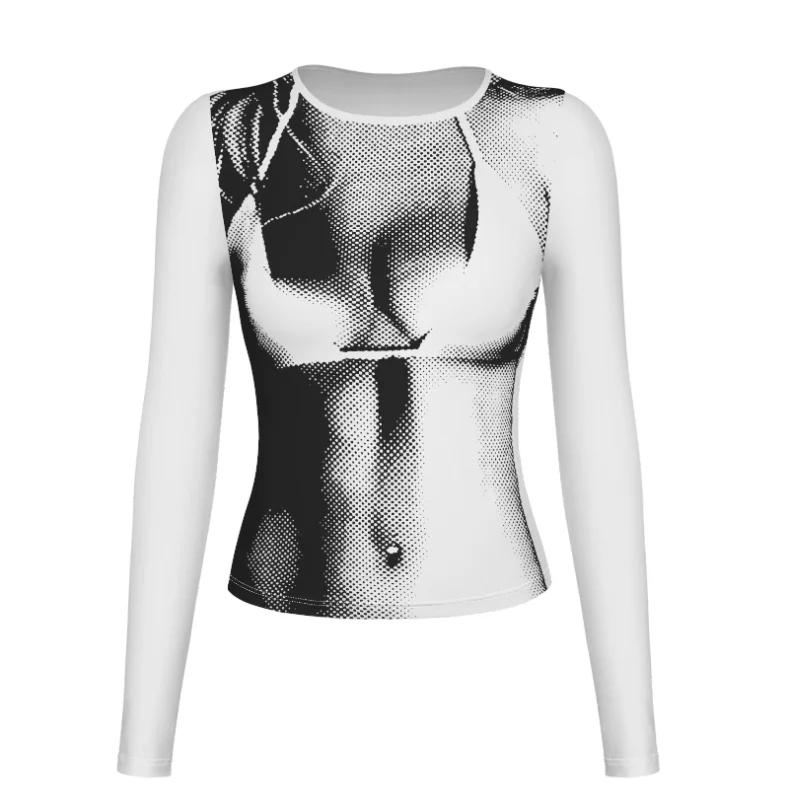 T-shirt décontracté moulant à col rond et imprimé numérique pour femme