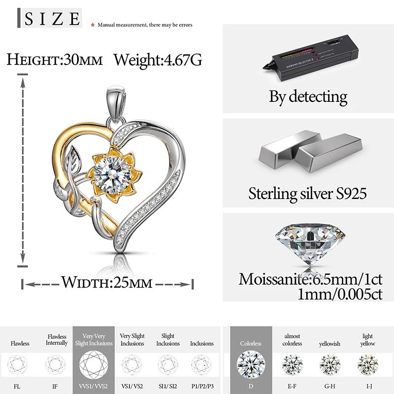 Collier avec pendentif en argent sterling 925 VVS Moissanite et diamants, idéal pour les femmes