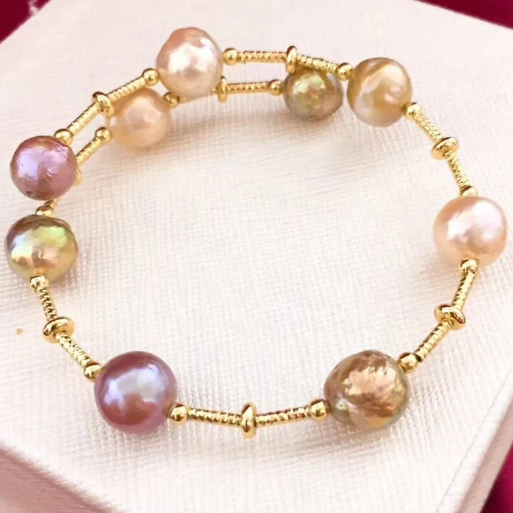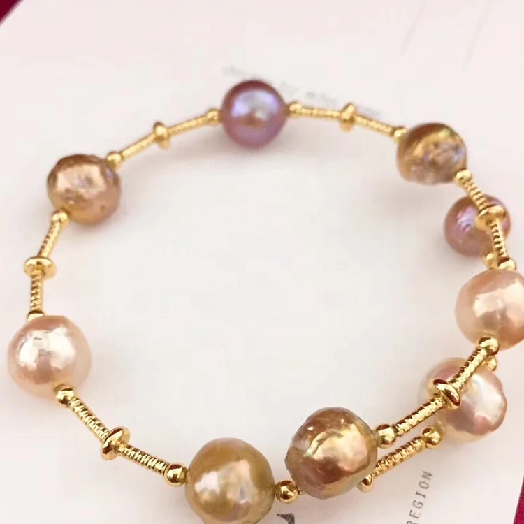 Bracelet en perles d'eau douce baroques en or 14 carats de haute qualité, bracelets hawaïens en perles