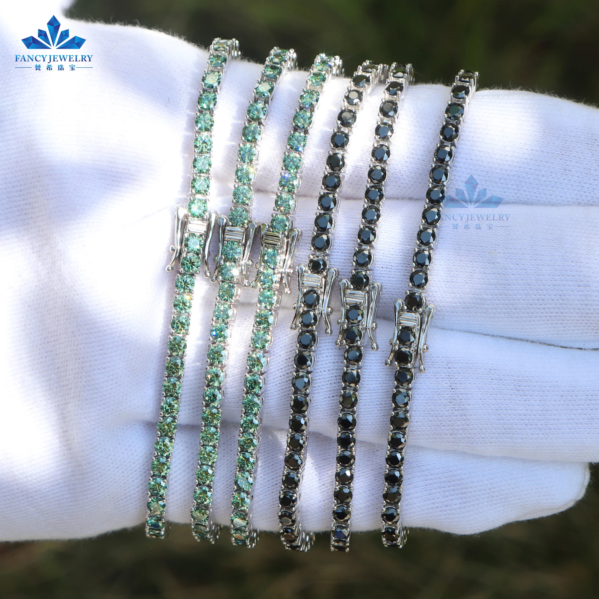 Bracelet tennis VVS en argent 925 avec diamants et moissanite, style hip-hop, rouge, rose et jaune