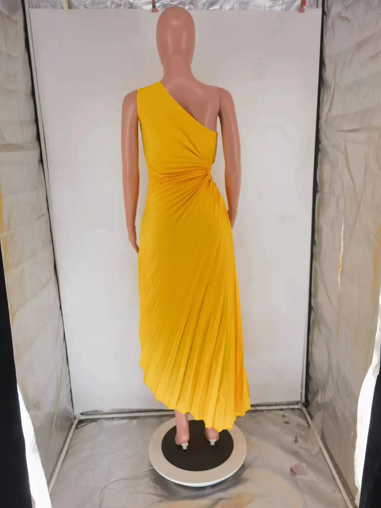 Robe longue et sexy pour femme, tenue de soirée élégante et sexy, sans manches, à une épaule, plissée