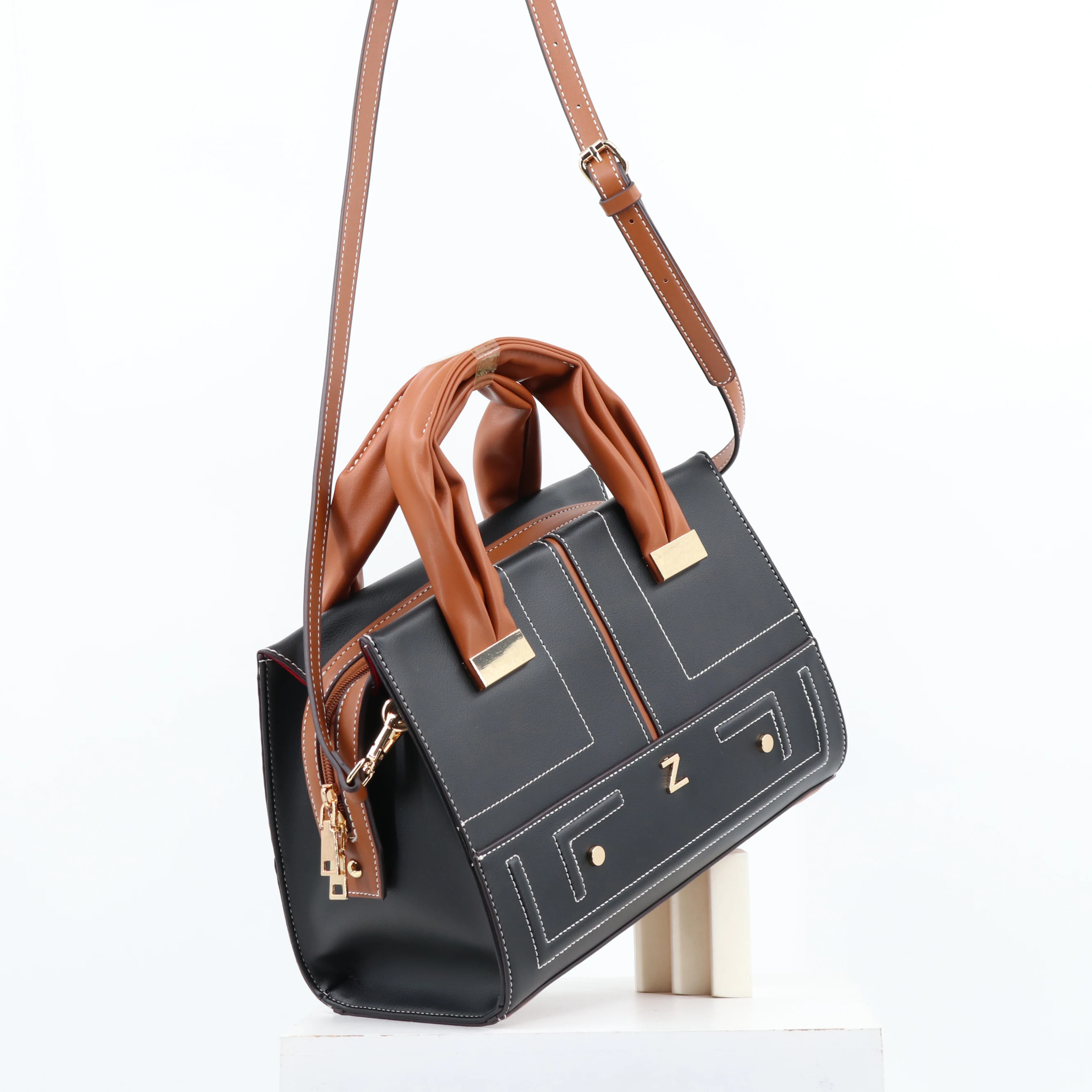 Sacs à main de grande capacité pour femmes, sac à bandoulière en cuir PU souple texturé, sacs à main de couleur contrastée Ladi, 27,5 cm