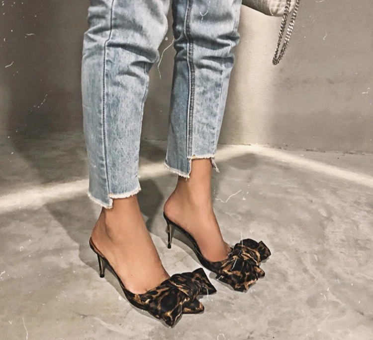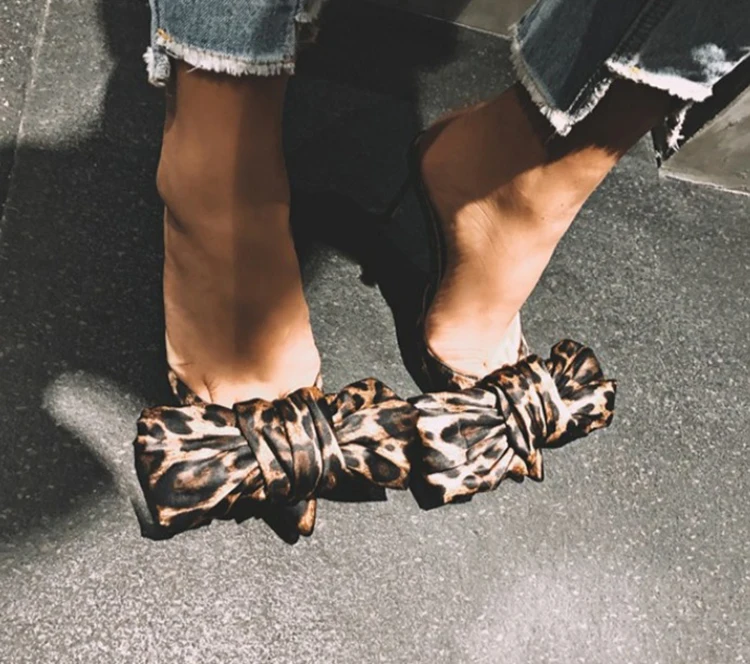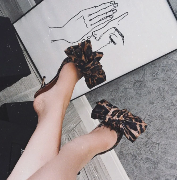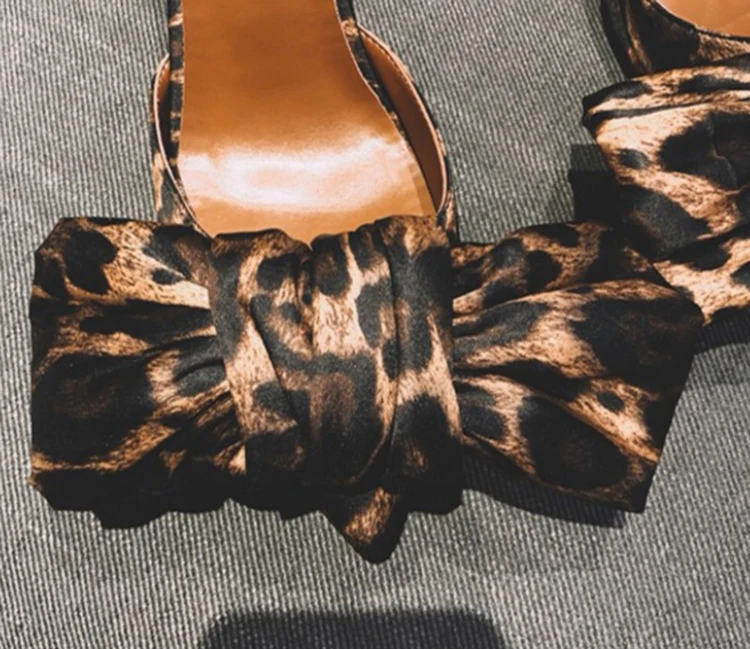 Sandales à talons hauts en cuir PU léopard pour femmes, chaussures à talons hauts avec nœud papillon, tendance