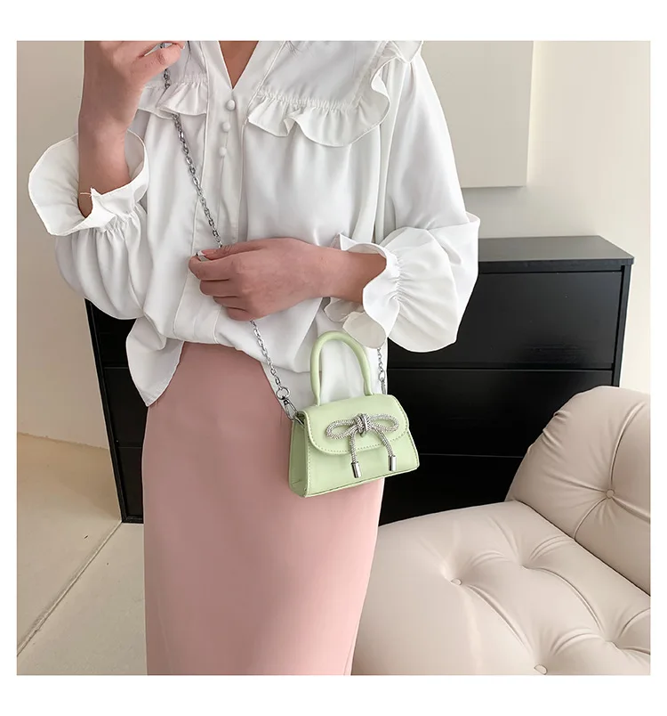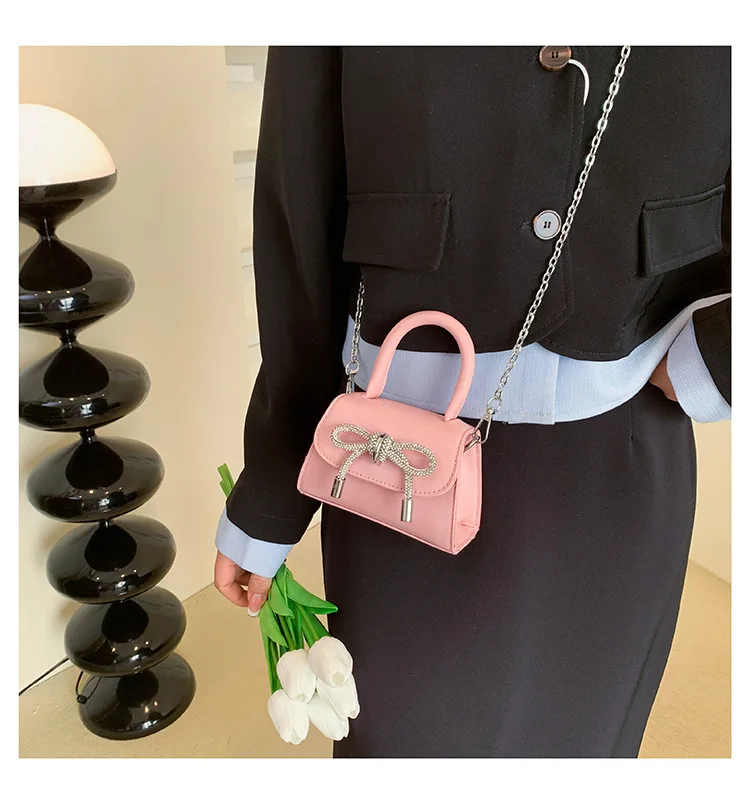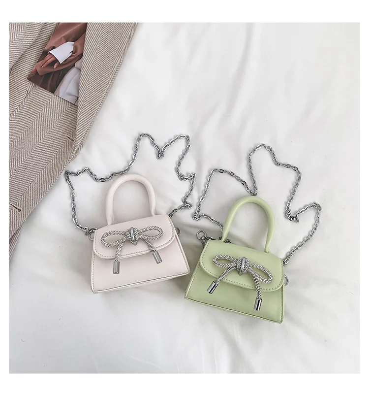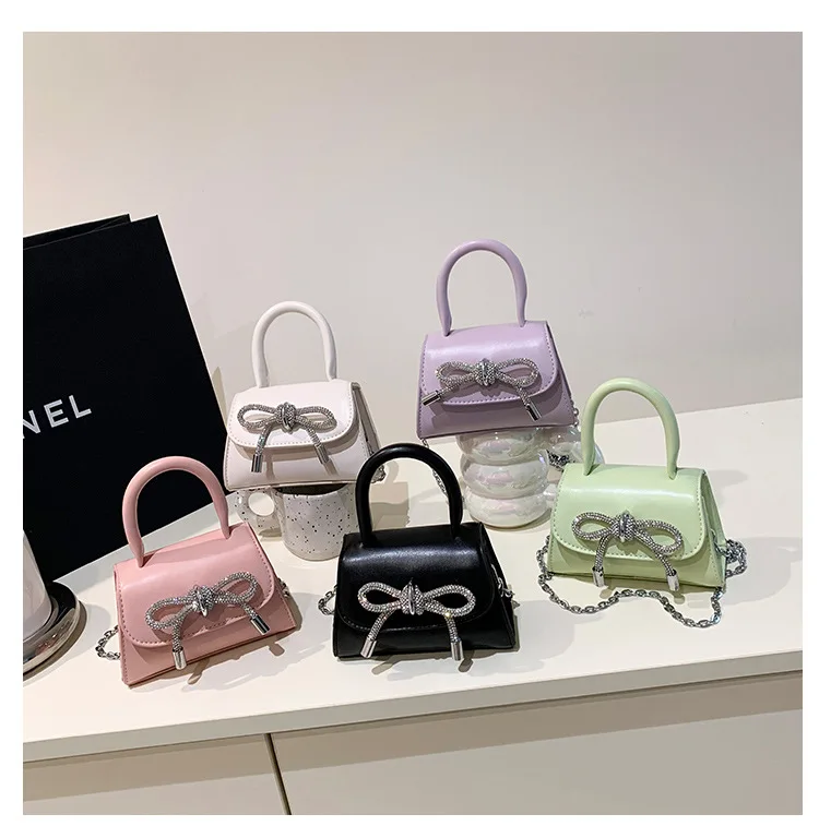 Pochettes à nœud en diamant pour enfants, mini sac à main coloré en PU, tendance, nouvelle collection