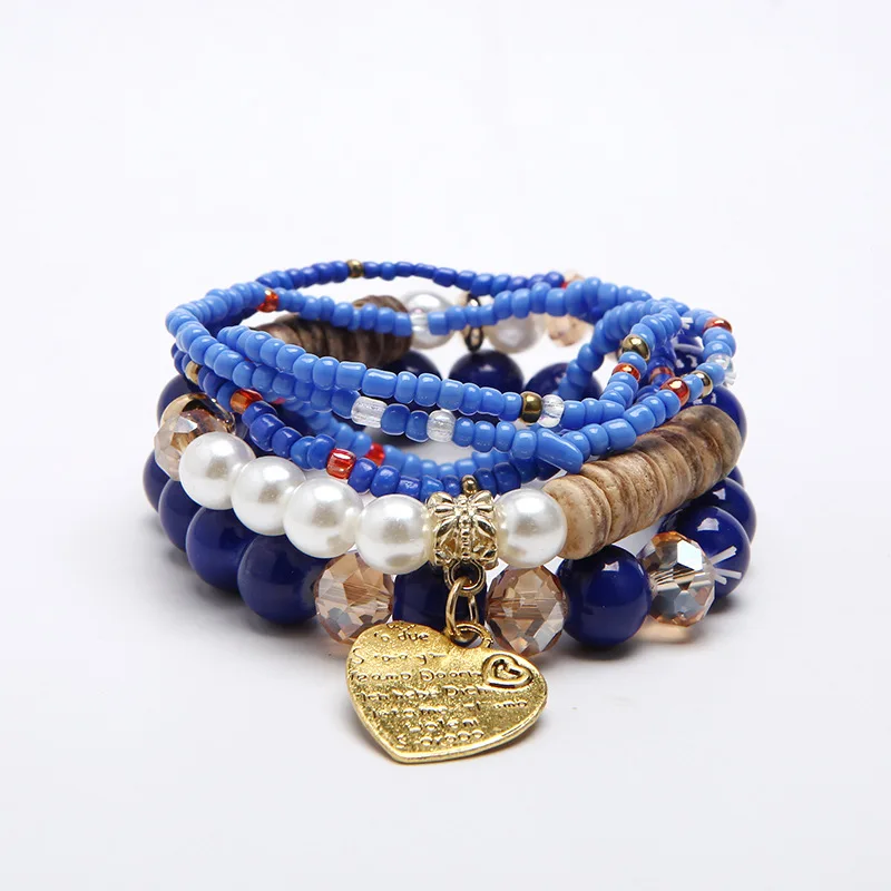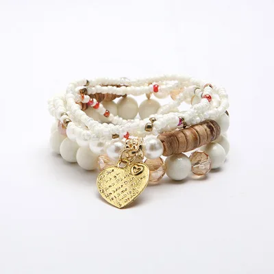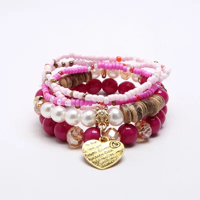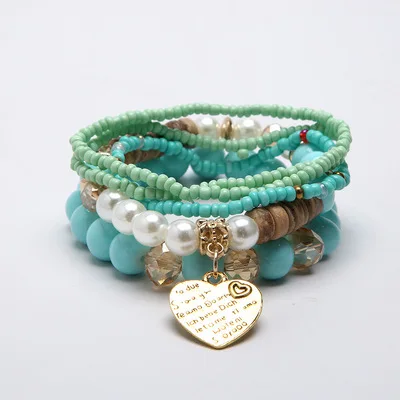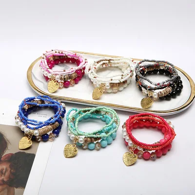 Bracelet bohème en pierres naturelles, ensemble de bijoux avec pompon et breloques, tendance, pour femmes