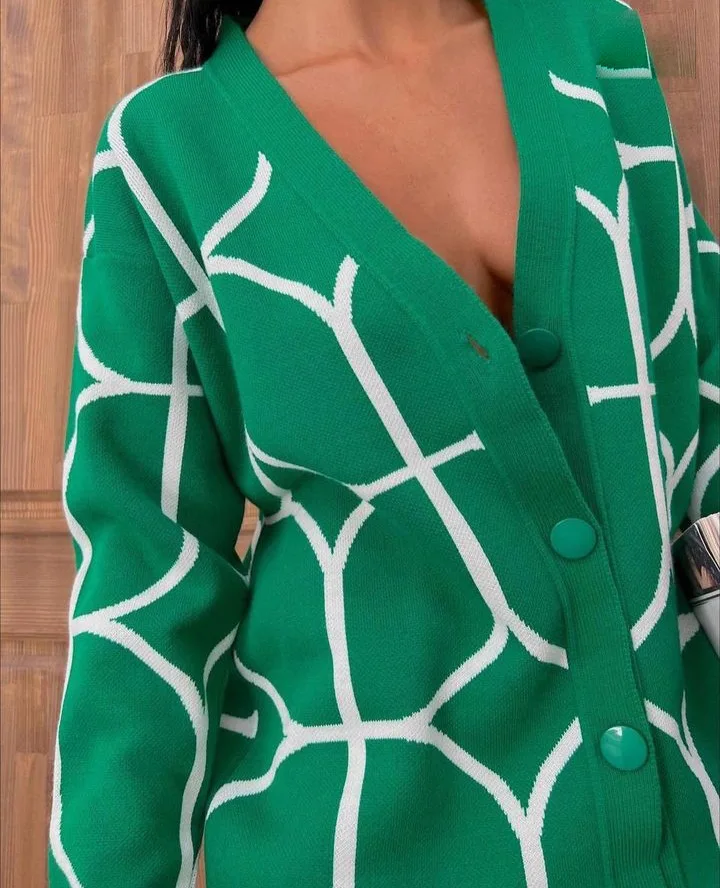 Veste cardigan tricotée à col en V, nouvelle collection populaire européenne et américaine, à motif contrasté