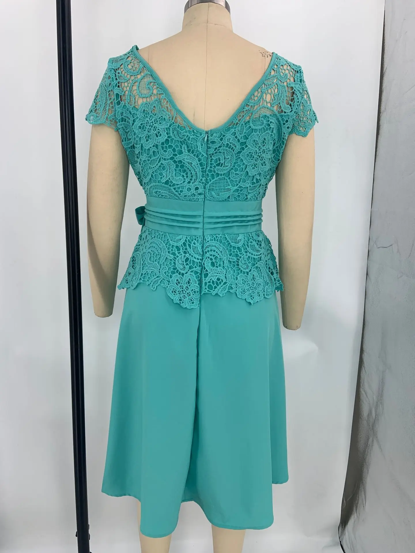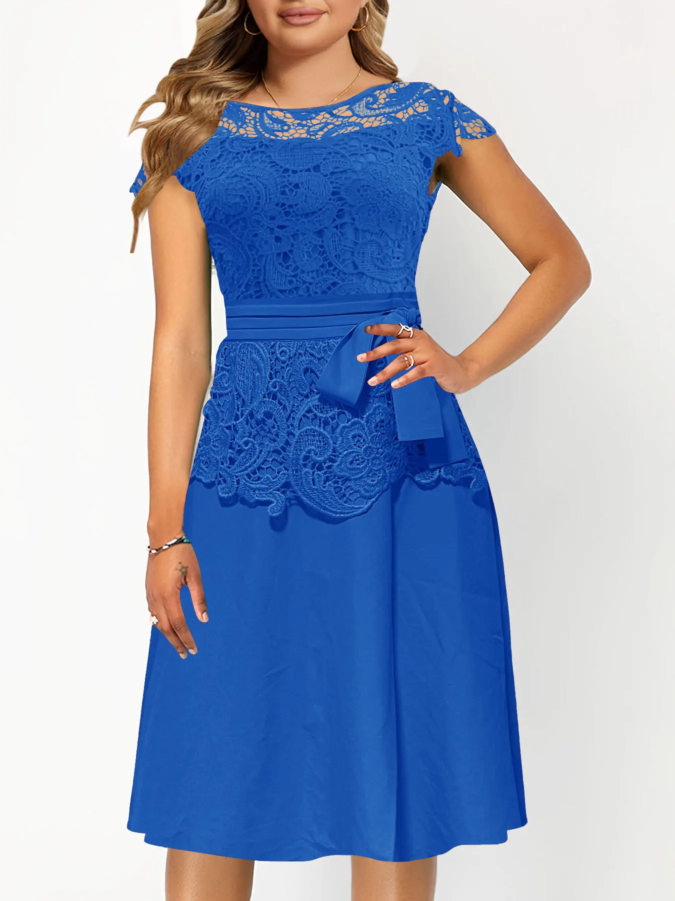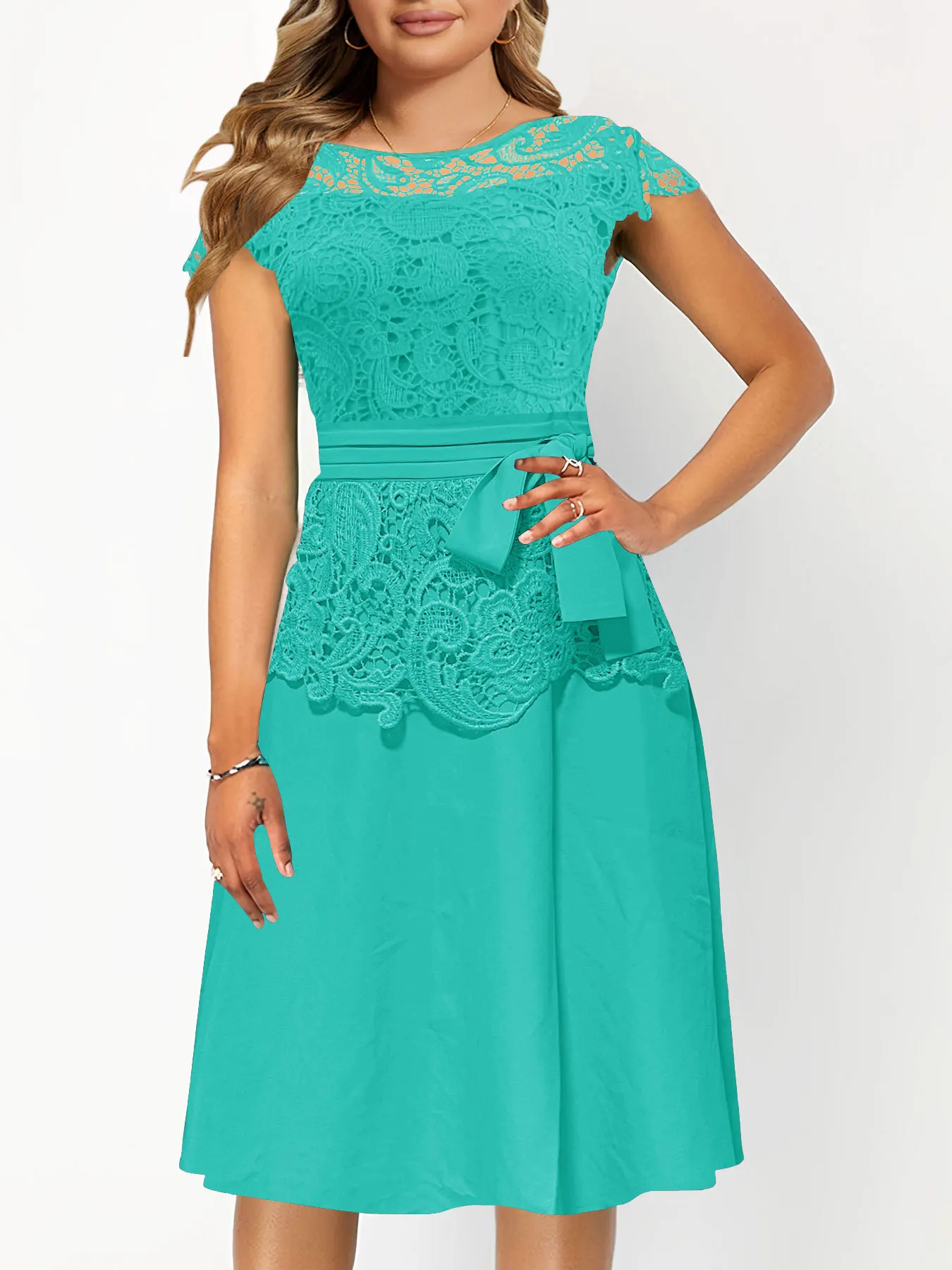 Robe d'été grande taille tendance, col rond, taille haute, coutures en dentelle, coupe ajustée
