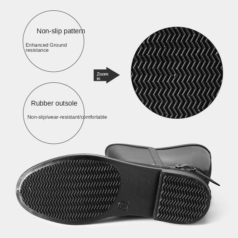 Nom du produit : Botte de pluie pour femme Matériau : caoutchouc + PVC