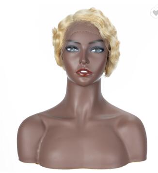 Perruque brésilienne courte bouclée avec dentelle, coupe Pixie, cheveux humains, coupe U, pour femmes noires, tendance