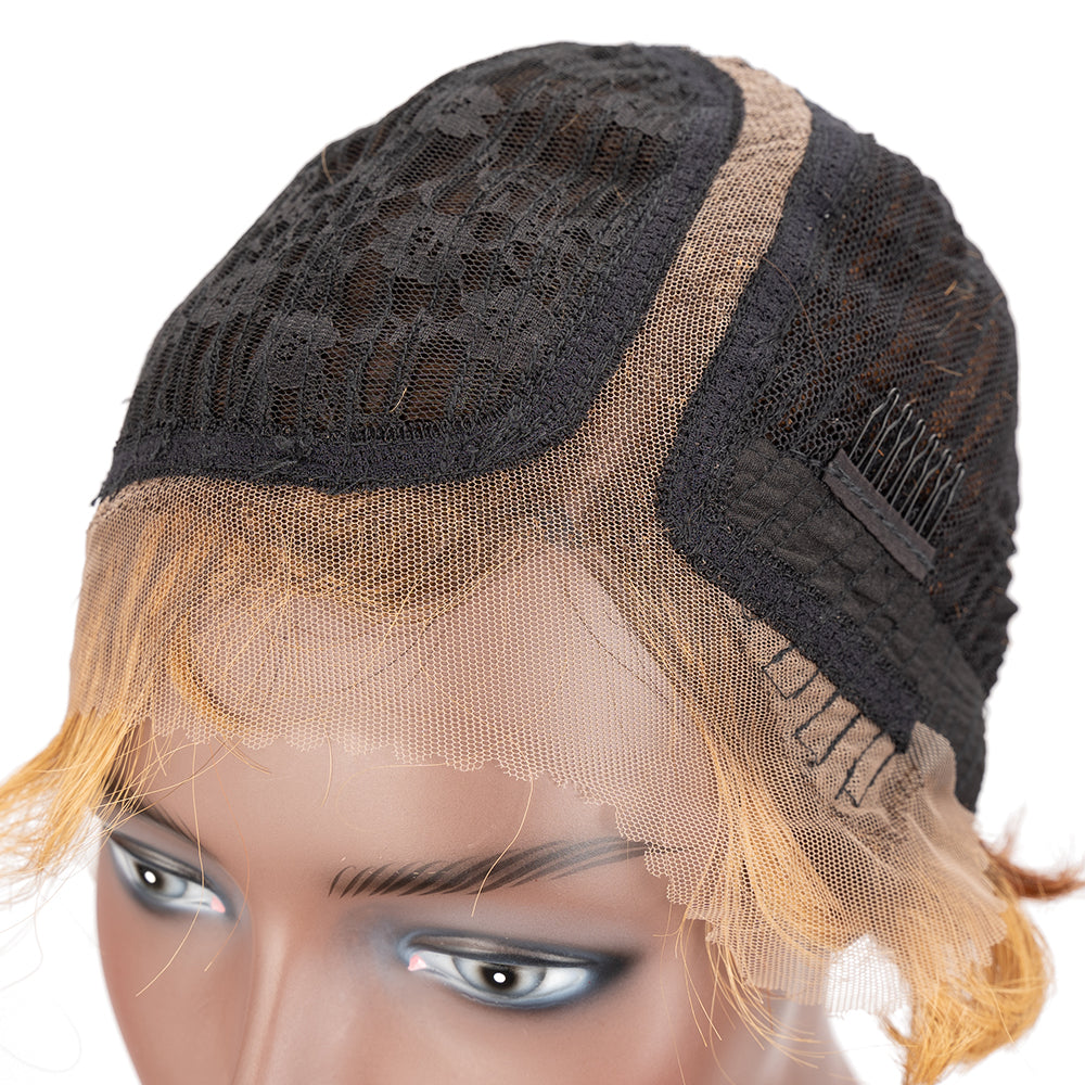 Perruque brésilienne bouclée avec dentelle et coupe Pixie, cheveux humains, raie en U