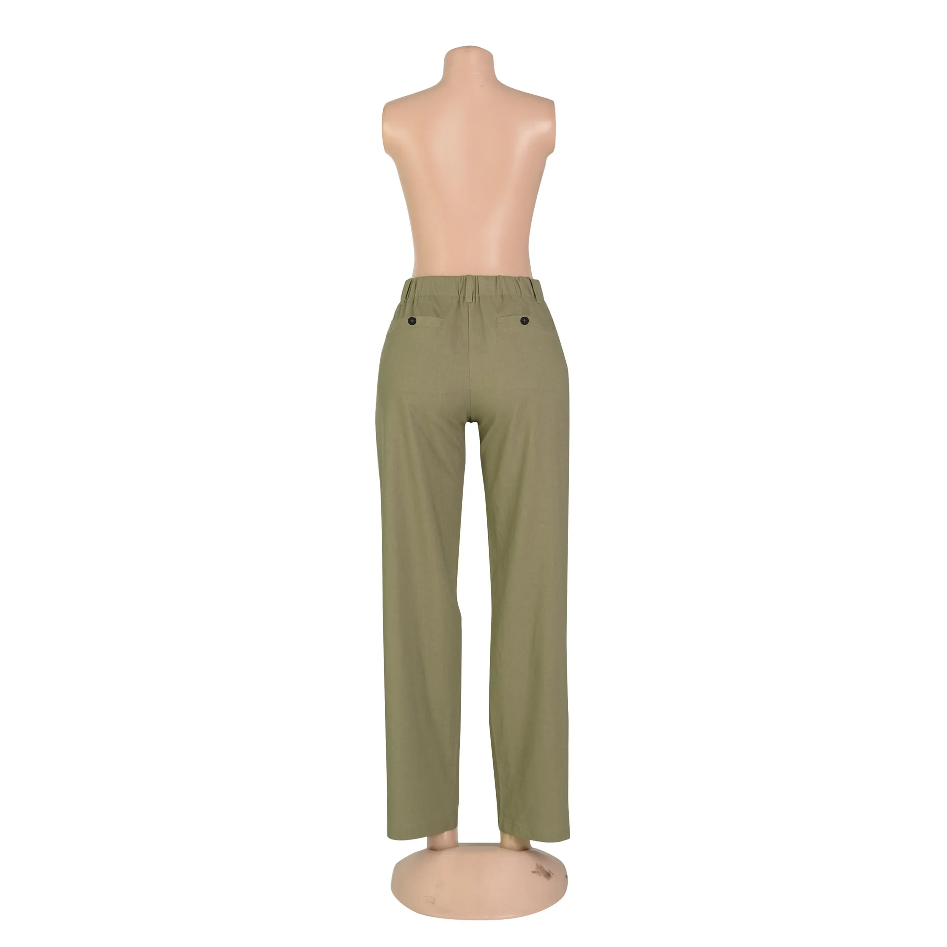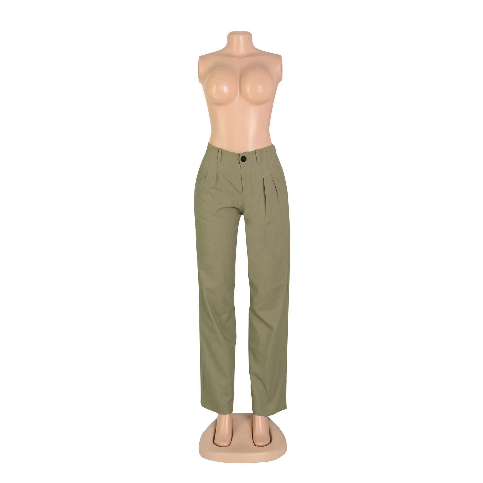 Pantalon décontracté taille haute, respirant et droit, couleur unie, pour femme, tendance printemps-été