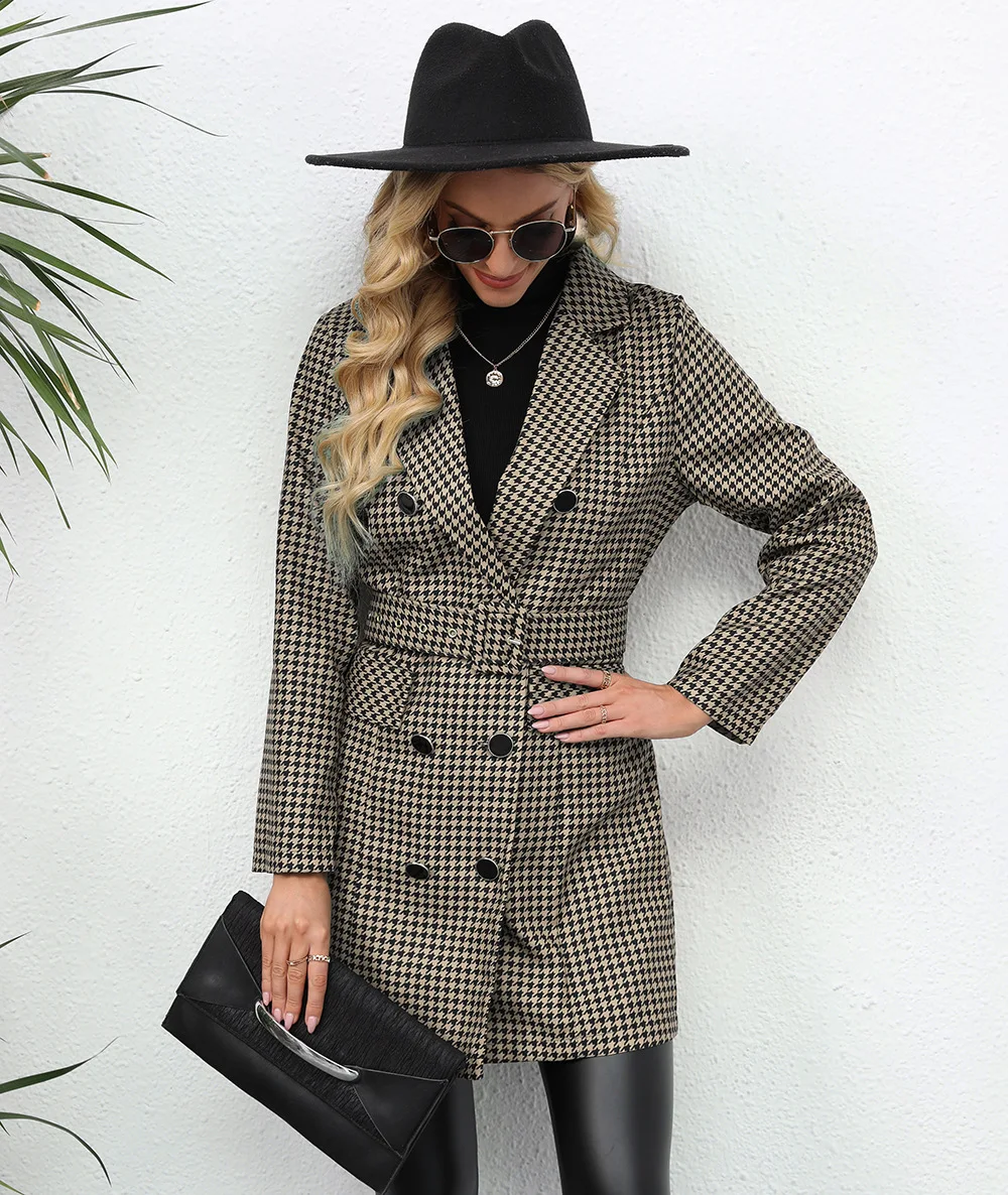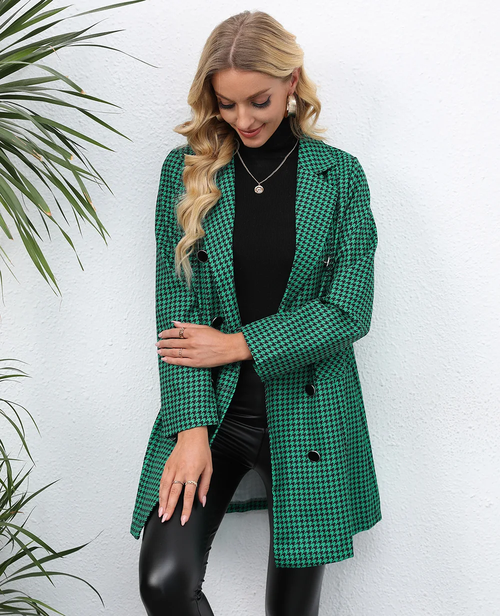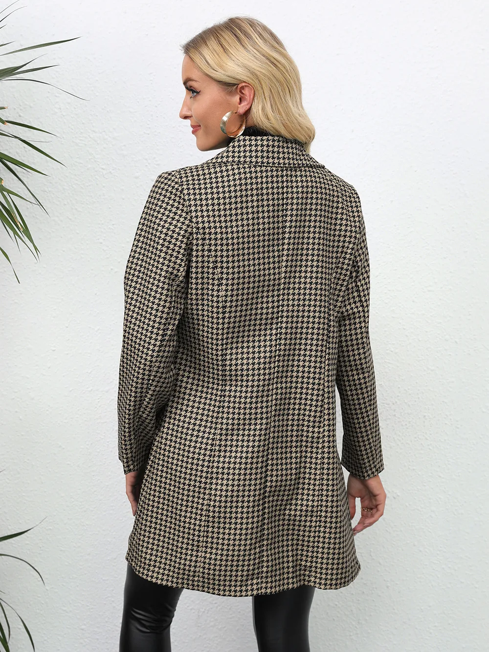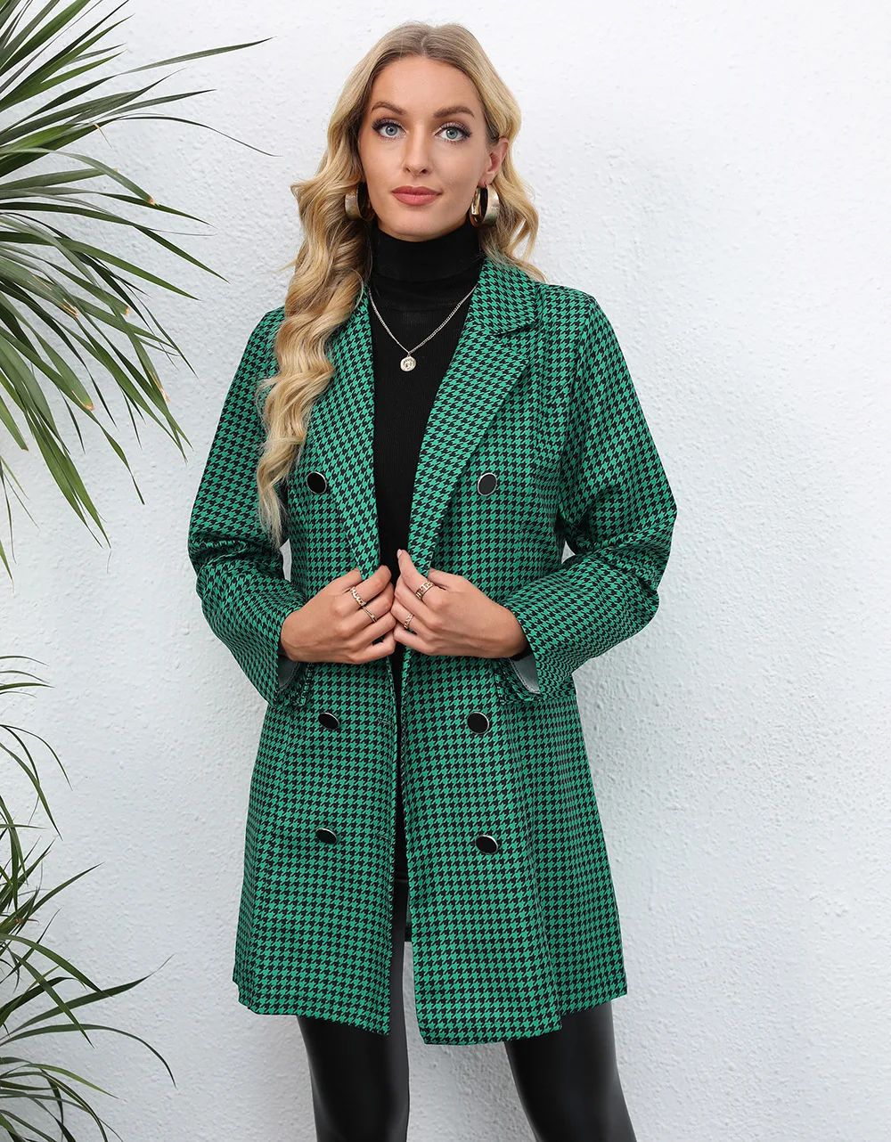 Manteaux longs à carreaux et col rabattu pour femmes, élégants et de haute qualité, à manches longues, décontractés, à carreaux