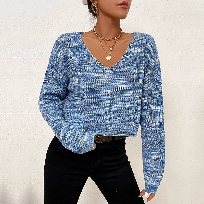 Pull court à manches longues en tricot à dégradé de couleurs, élégant et tendance