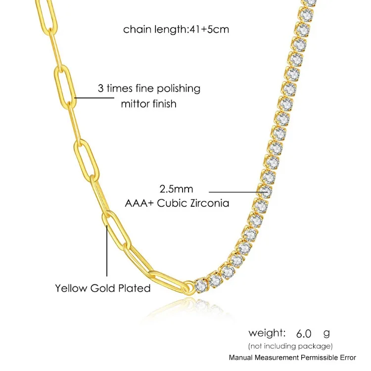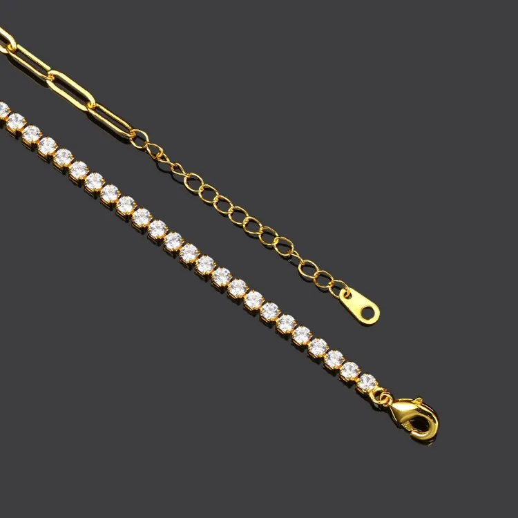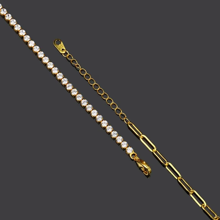 Parures de bijoux pour femmes, 3 pièces, bracelet, collier, boucles d'oreilles, trombones classiques en oxyde de zirconium de 2,5 mm, bijoux fantaisie
