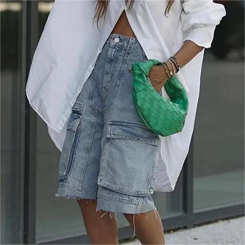 Krisstargirl 2025 New Fashion Women Jean Pants Bottoms Summer Blue Bottoms Pockets Split-joint Cropped Trousers for Female