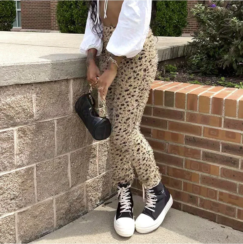 Pantalon crayon léopard pour femme, slim, décontracté, extensible, style streetwear, vintage