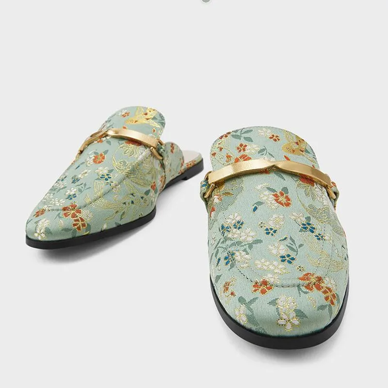Sandales plates à fleurs brodées pour femmes, personnalisation du logo, chaussures de loisirs