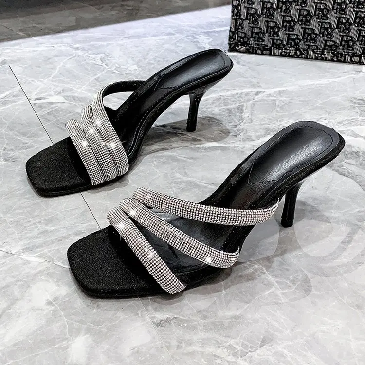 Sandales à bout carré pour femmes, nouvelle collection, élégantes et brillantes, à talons hauts