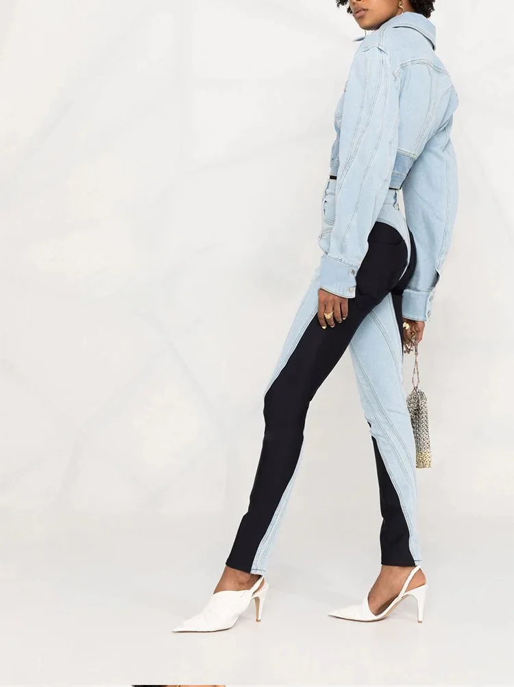 Nouveautés 2024 boutique mode élégante extensible patchwork denim jeans pantalons pour femmes