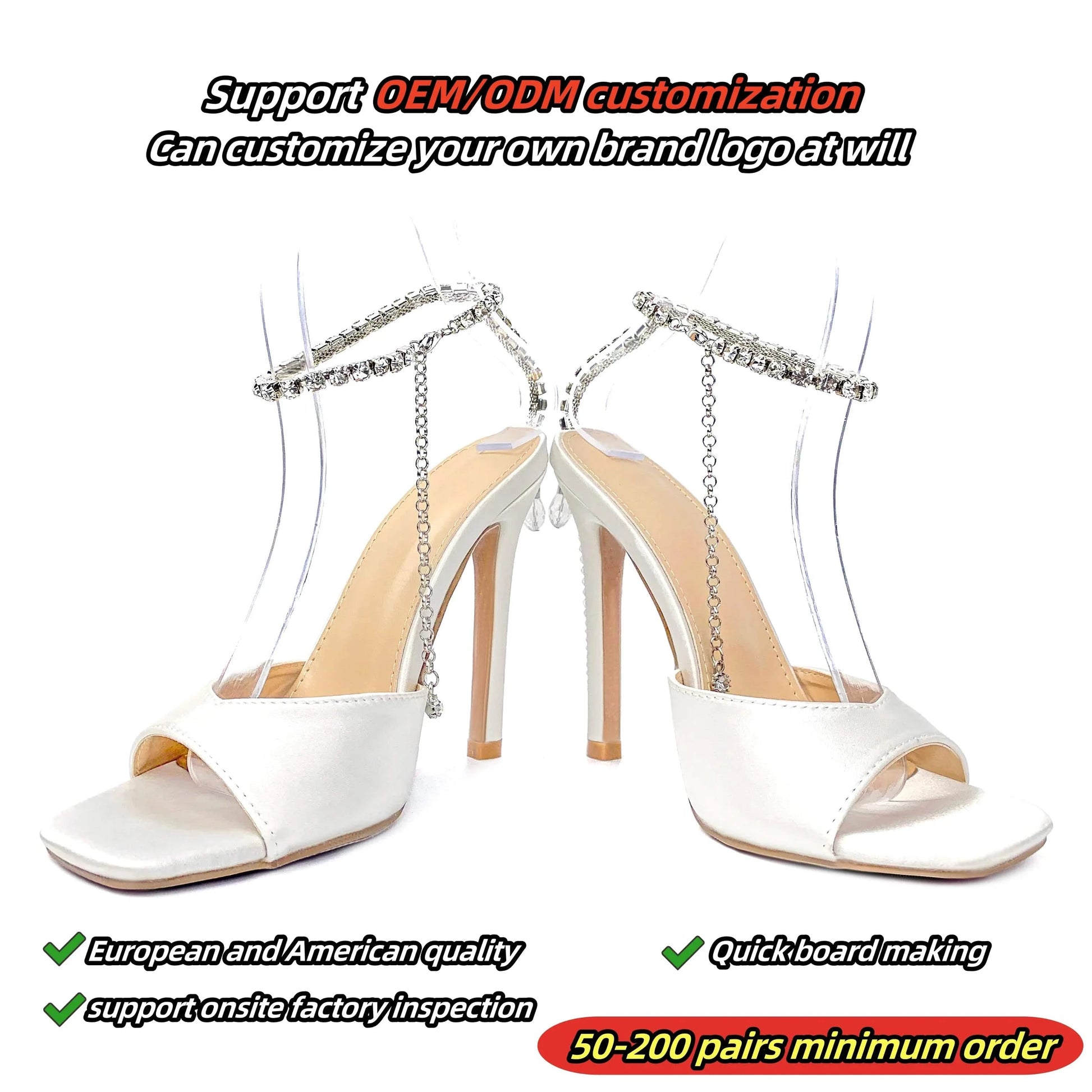 Sandales à talons hauts pour femmes, nouveau design formel, strass brillants, bouche de poisson, chaussures de mariage creuses, boucle de ceinture, sangle étroite, dames