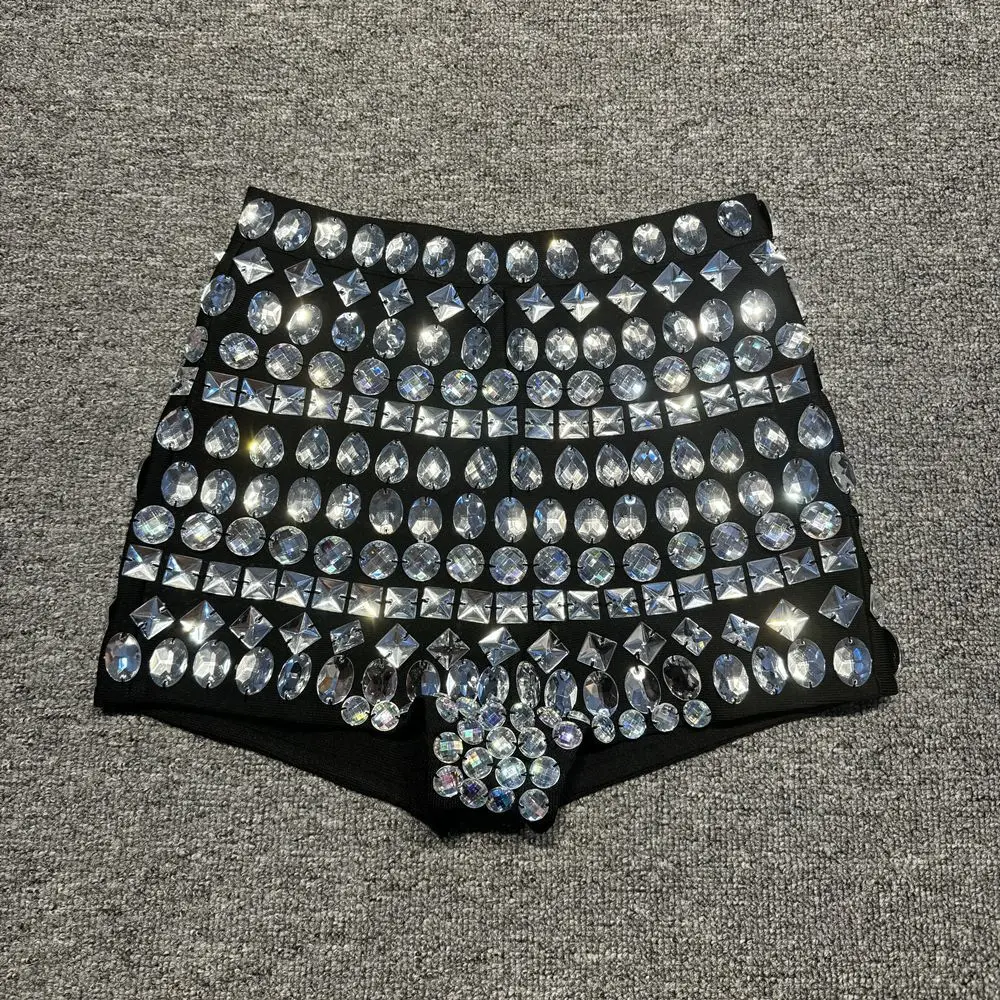 OUDINA Nouveautés Diamant Femmes Strass Brillant Fête Short Chaud Fête Paillettes Biker Femmes Short
