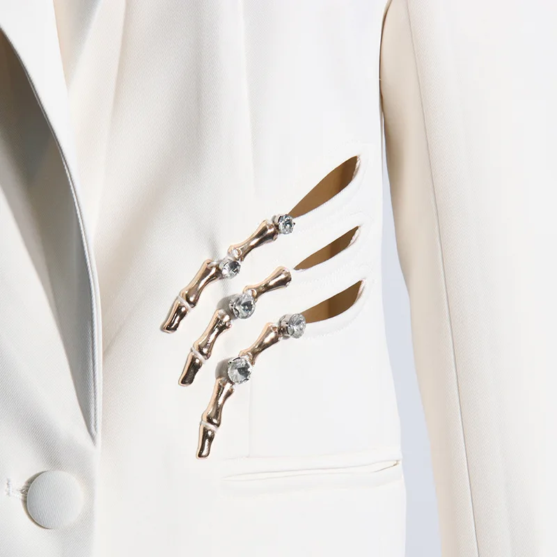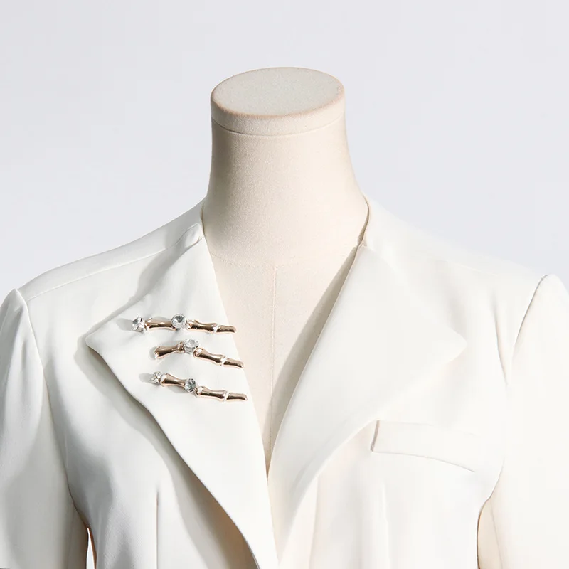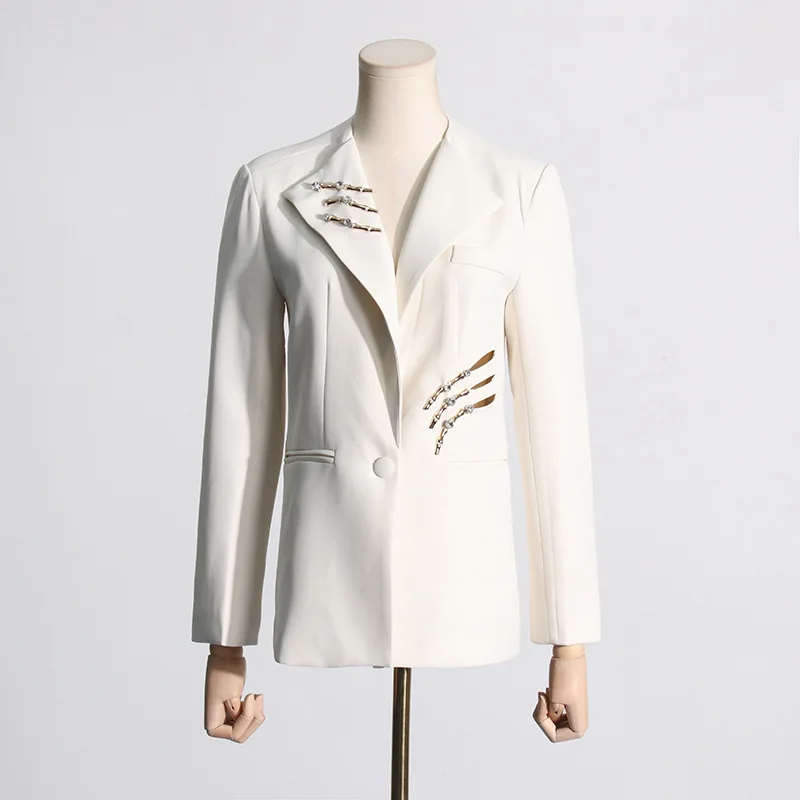 OUDINA Femmes Printemps Élégant Blazers 2024 Nouveau Style Coréen Niche Strass Creux Design Tempérament Blazer Femme