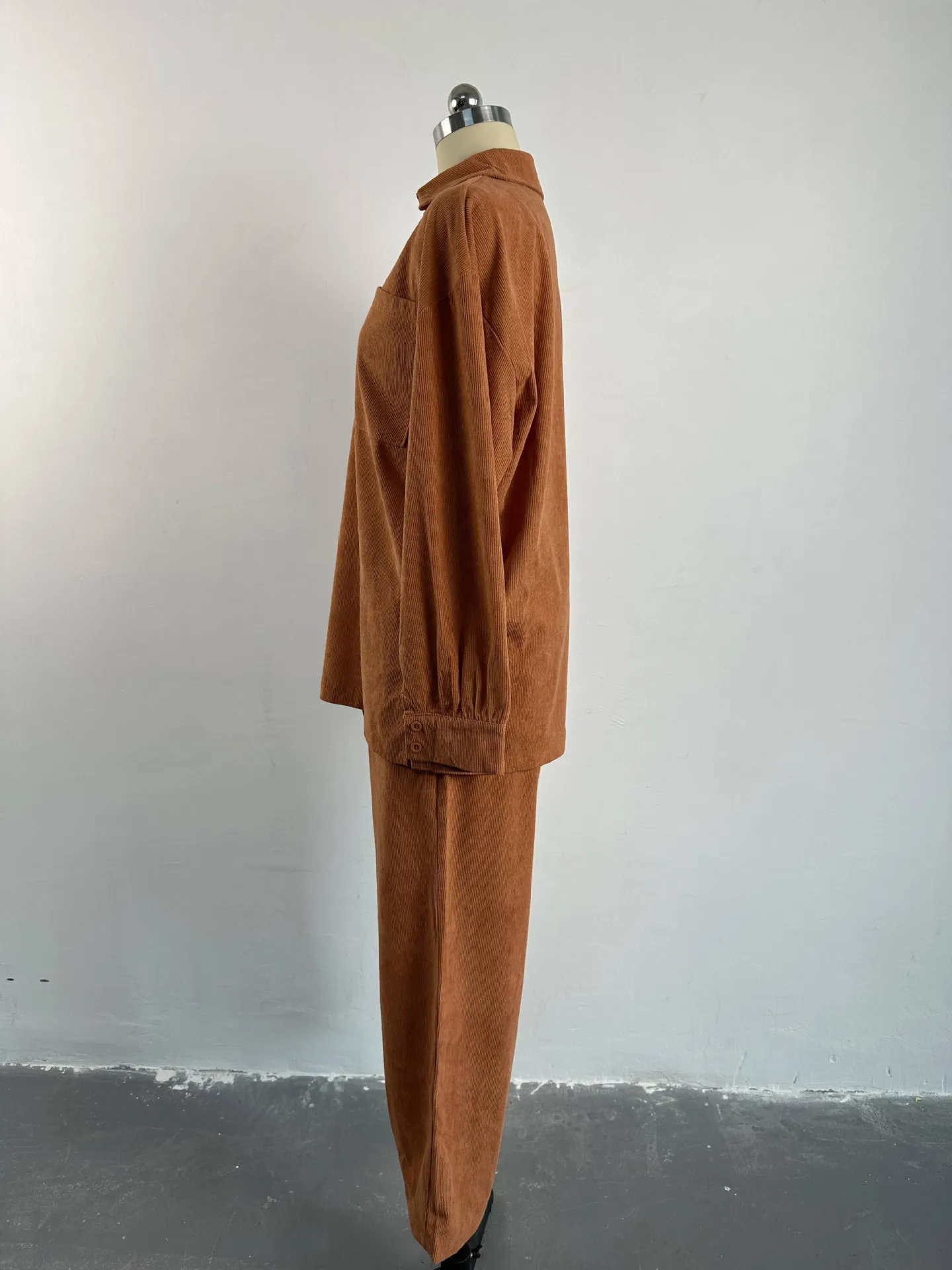 Ensemble décontracté grande taille pour l'automne 2023, polo à manches longues et pantalon décontracté taille haute avec poches, ensemble de sport