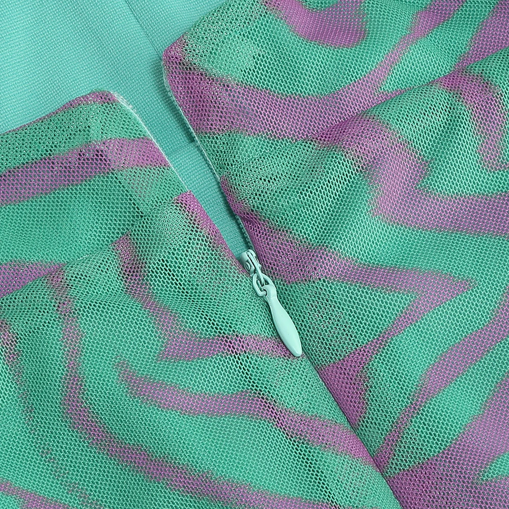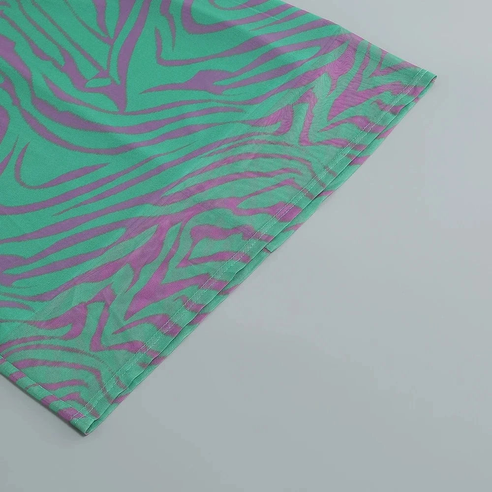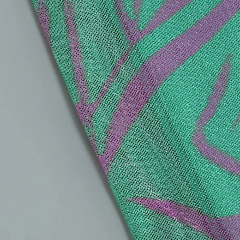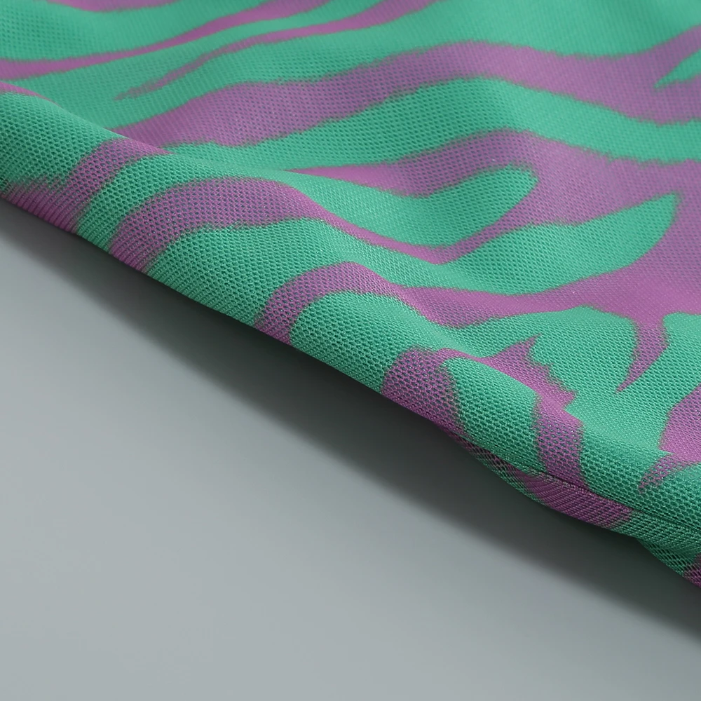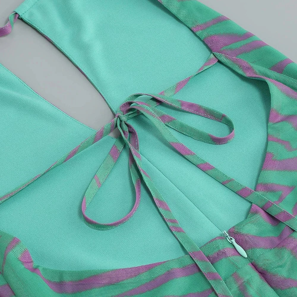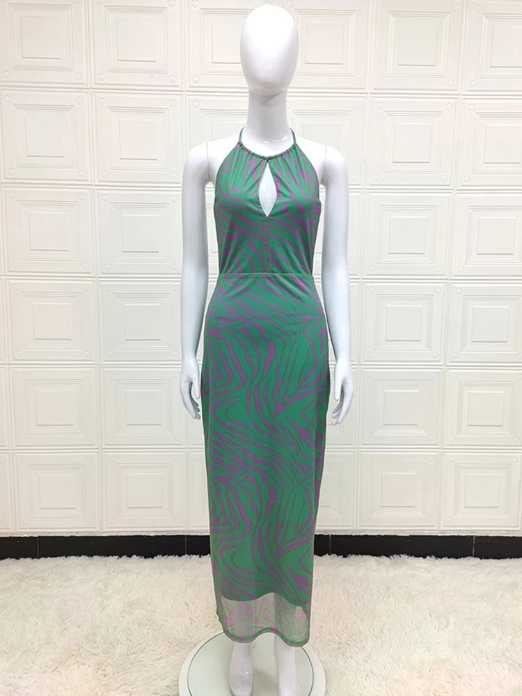 Hey, fashion - forward ladies! 😍 Check out this show - stopping halter - neck midi dress! The fabric is a high - quality blend that offers a smooth, comfortable fit while maintaining a sleek silhouette. The vibrant green with purple abstract stripes is a bold and eye - catching combination, ensuring you'll stand out in any crowd.