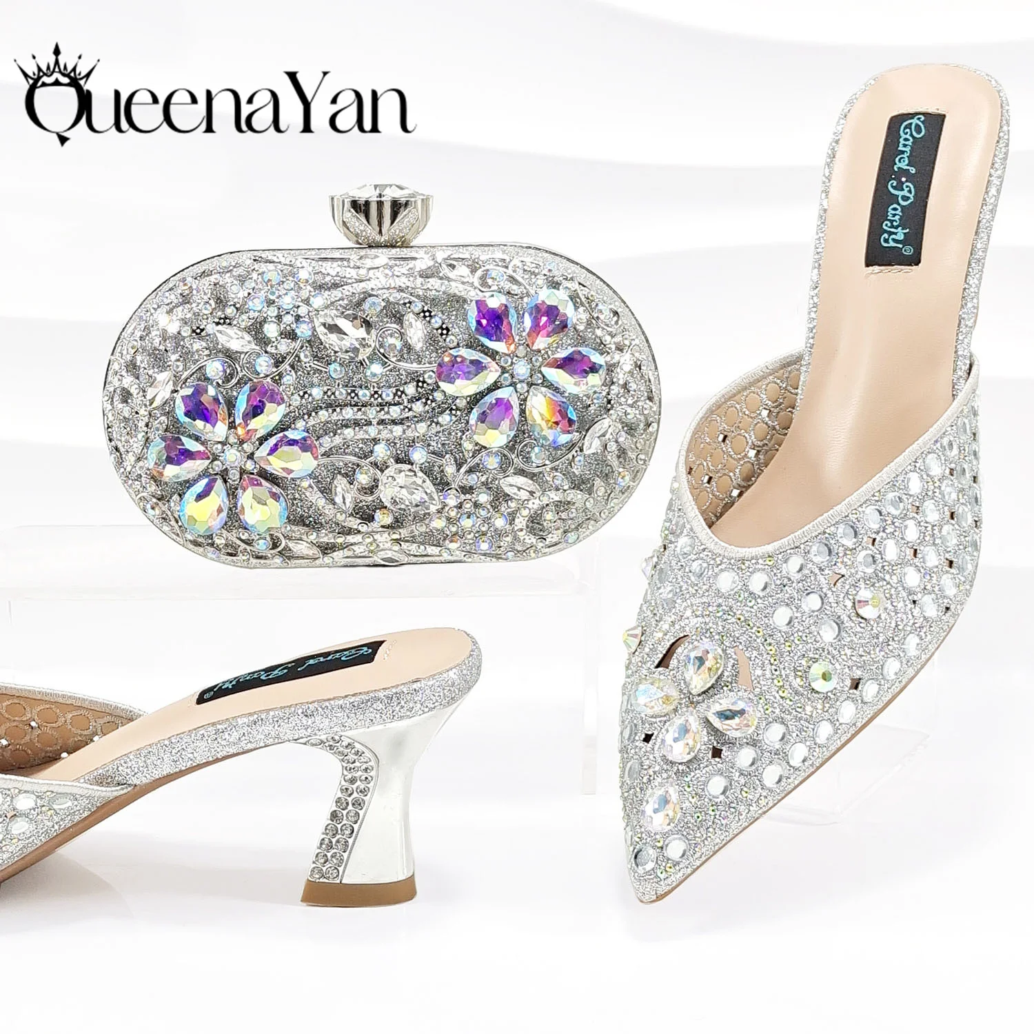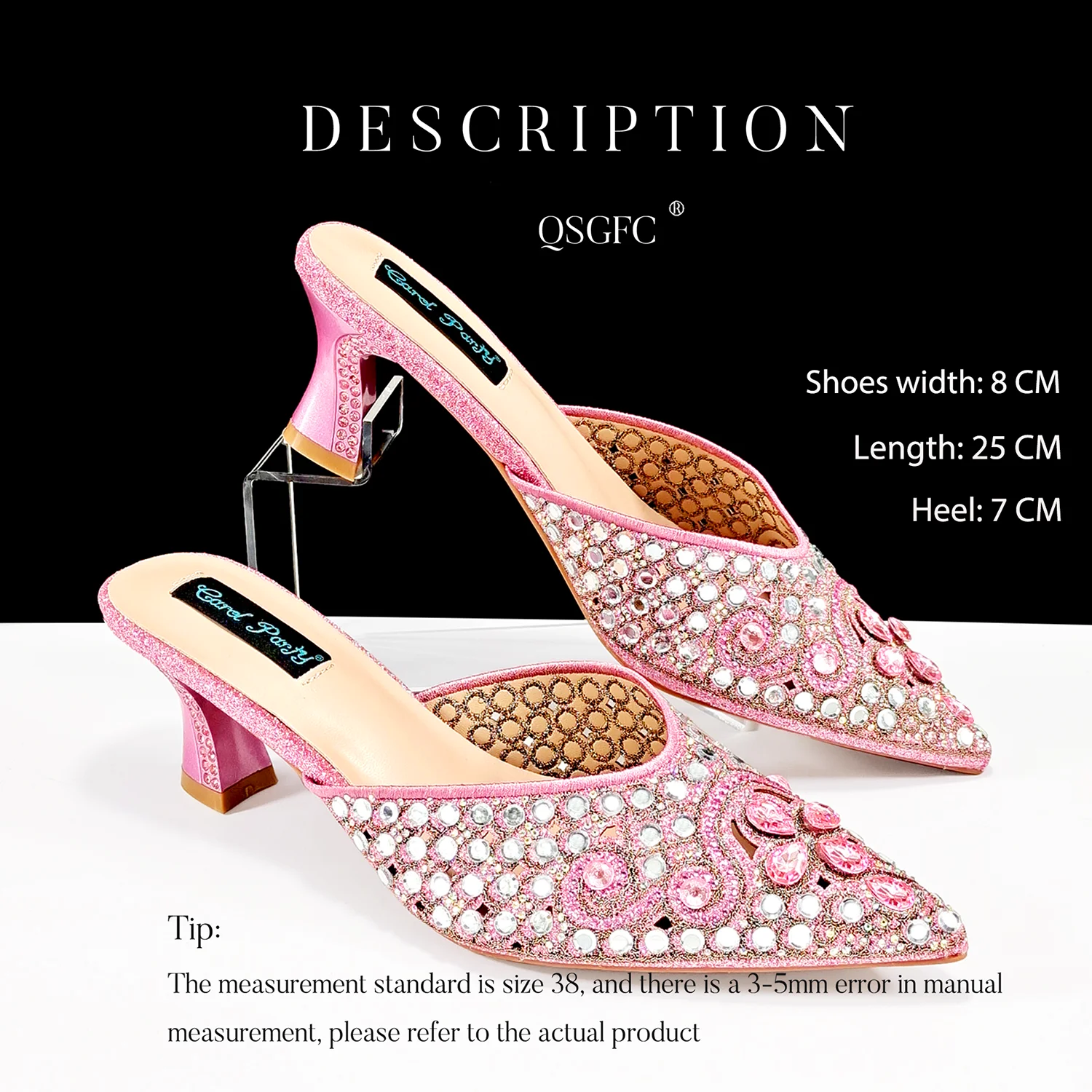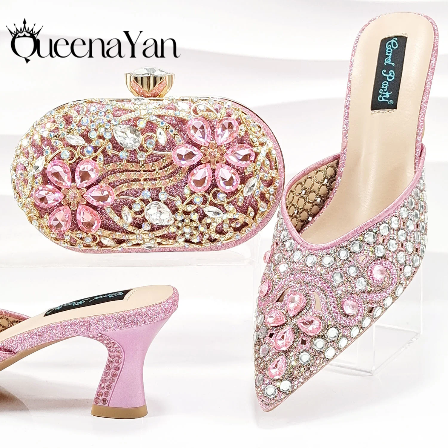 QSGFC New Design Specials Italian Women Heels Shoes and Bag in Pink Color Comfortable Heels With Rhinestone for Part