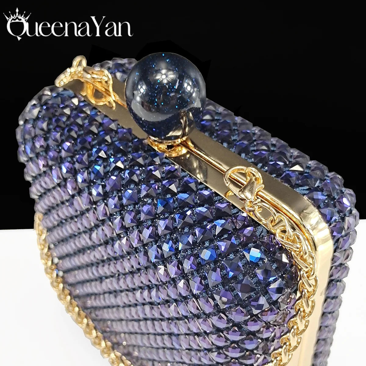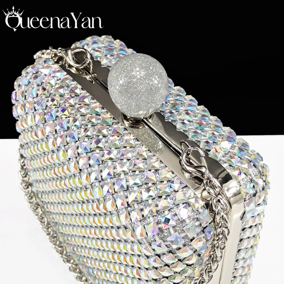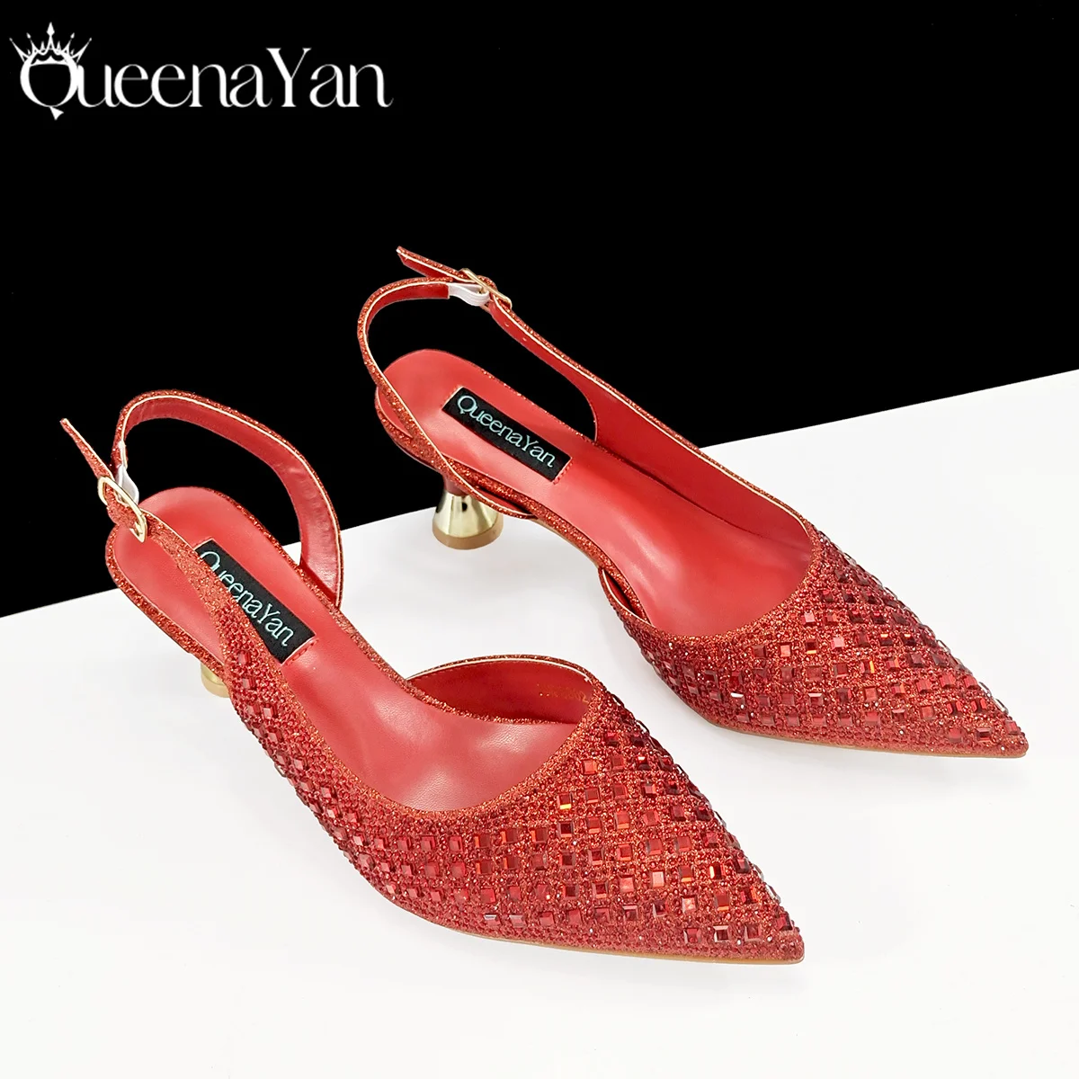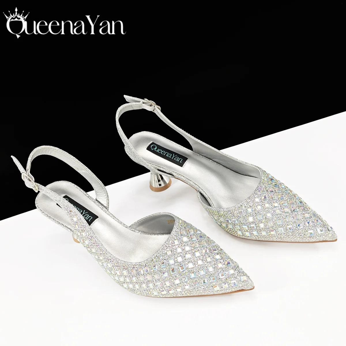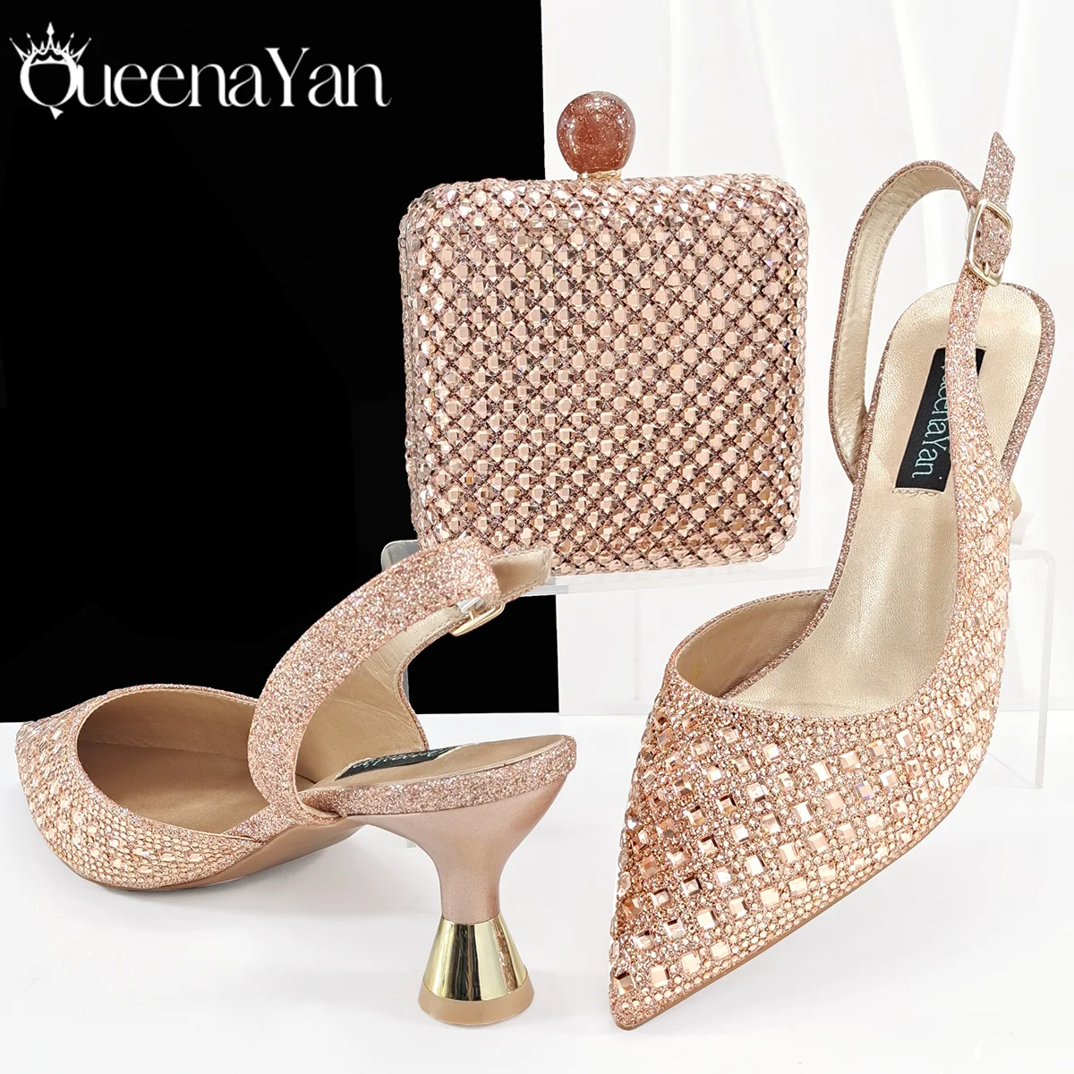 Queena Yan Italian Design Rhinestone Luxury Green Colour Pointed Toe Shoe & Bag Set Women's High Heels for Parties High Quality