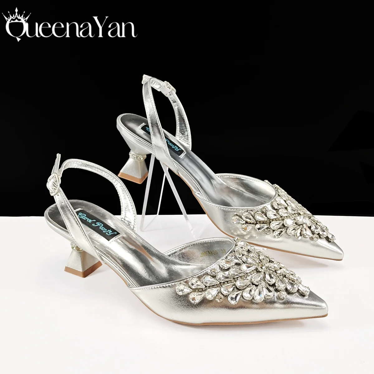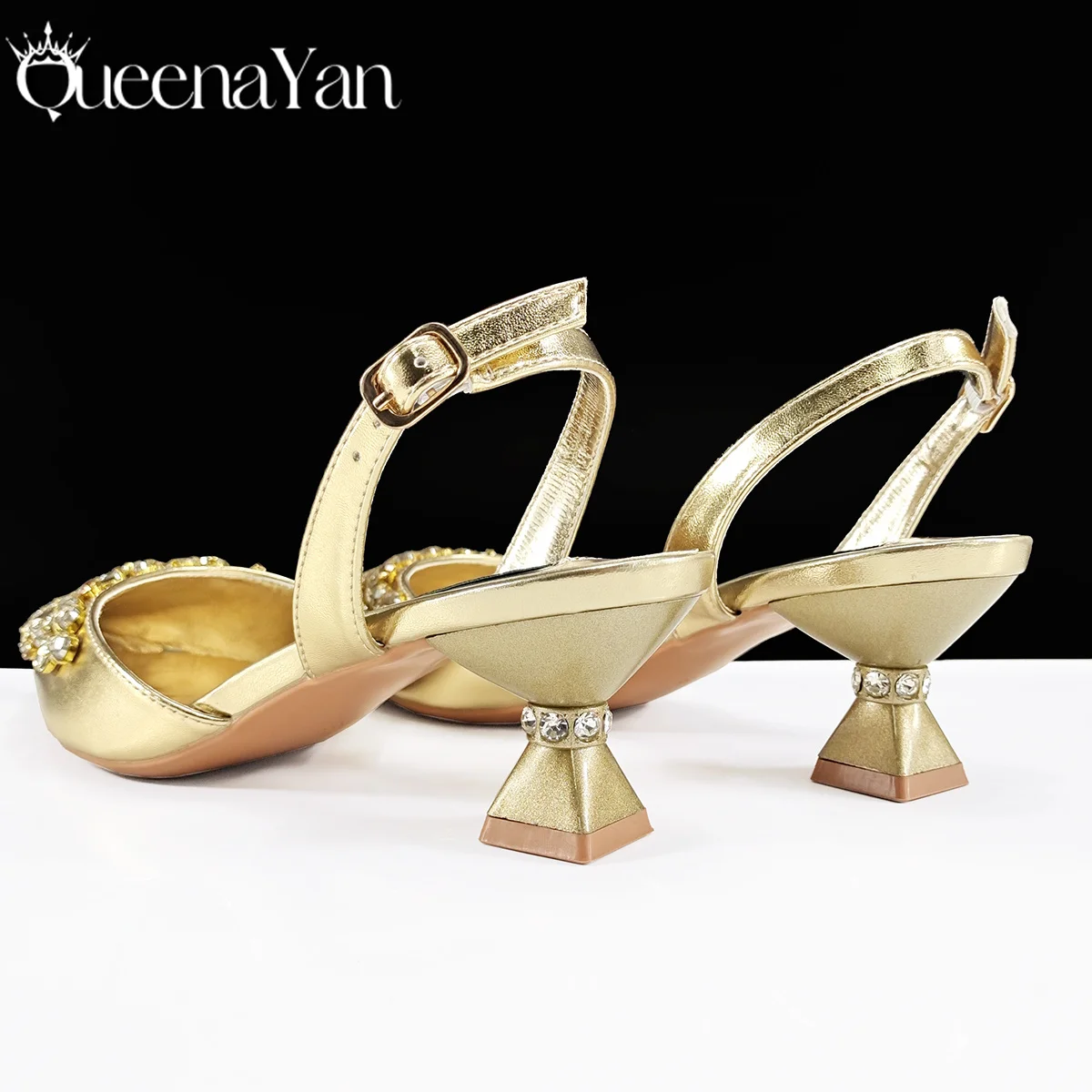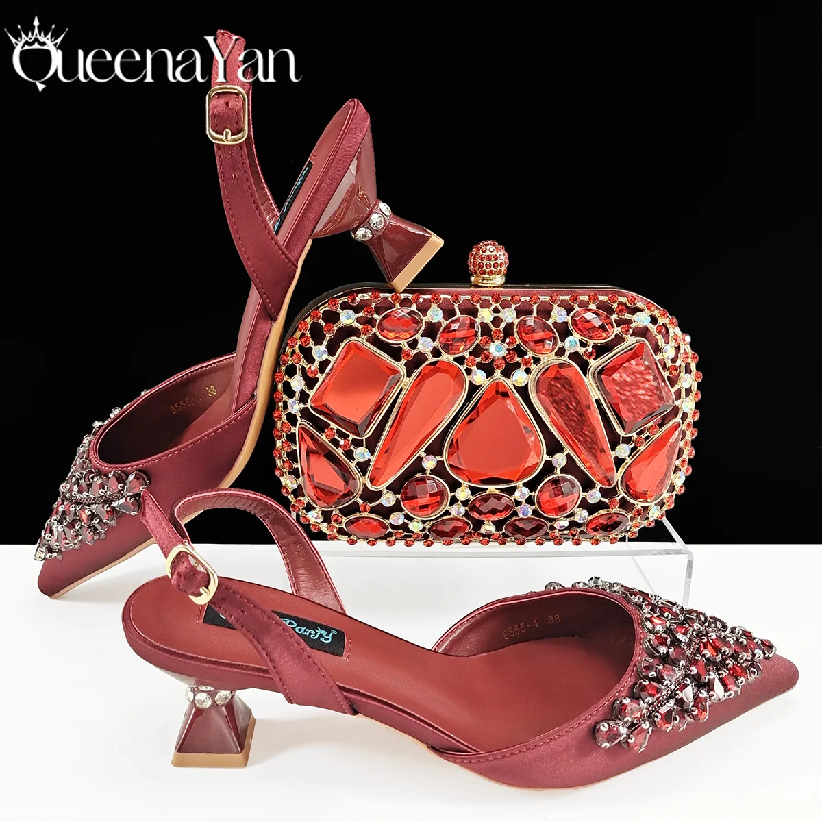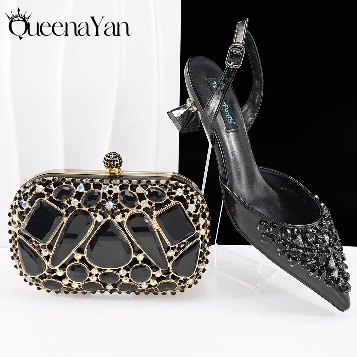 Queena Yan Italian shoes and handbags accessory set with rhinestone metal embellishments Wedding shoes Bridal shoes Designer