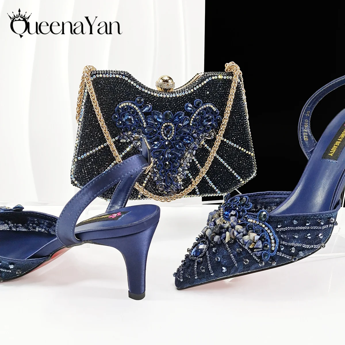 Queena Yan Women High Heel Party For Purple Color Shoes and Bag Set Rhinestone Handbag Italian Design Wedding INS 2025