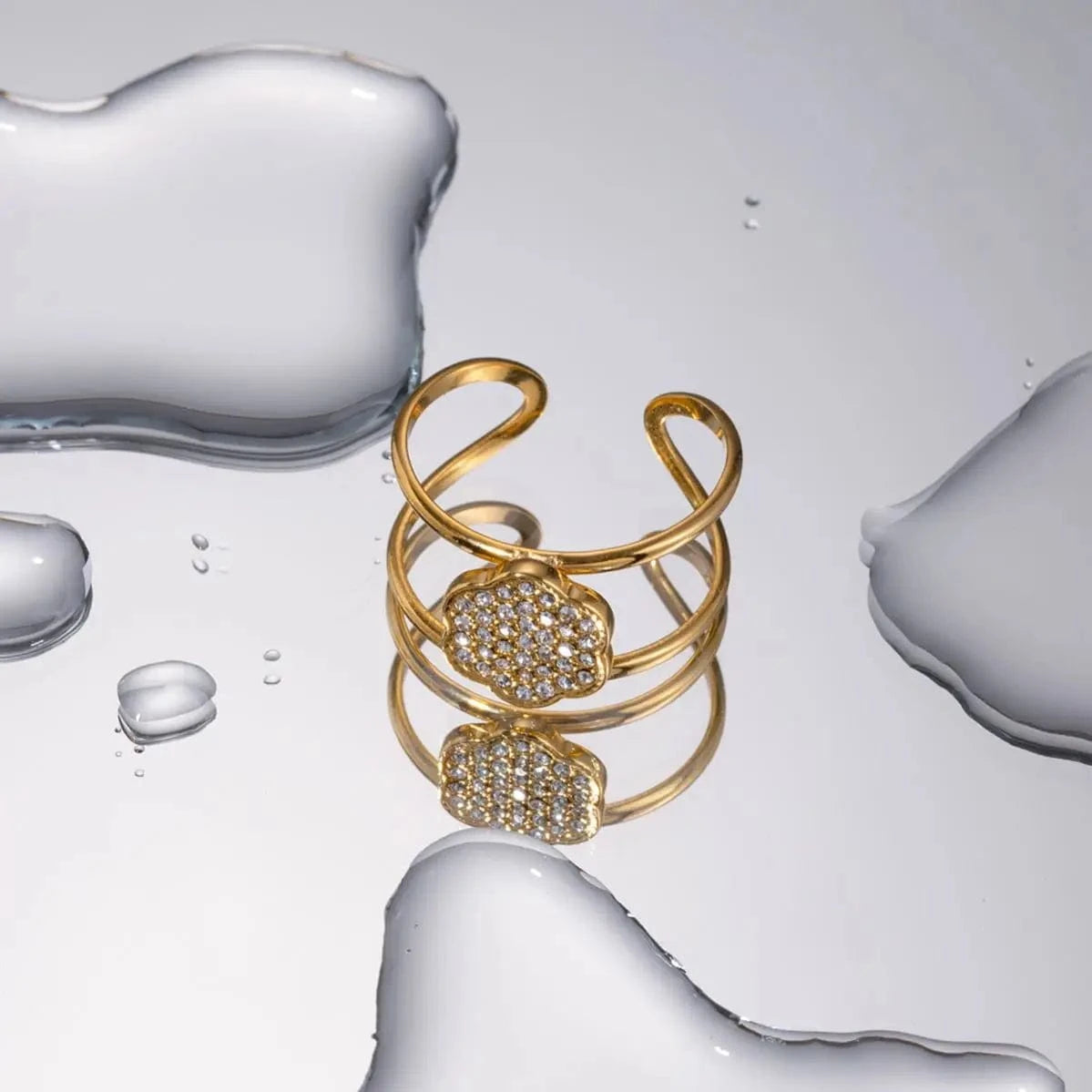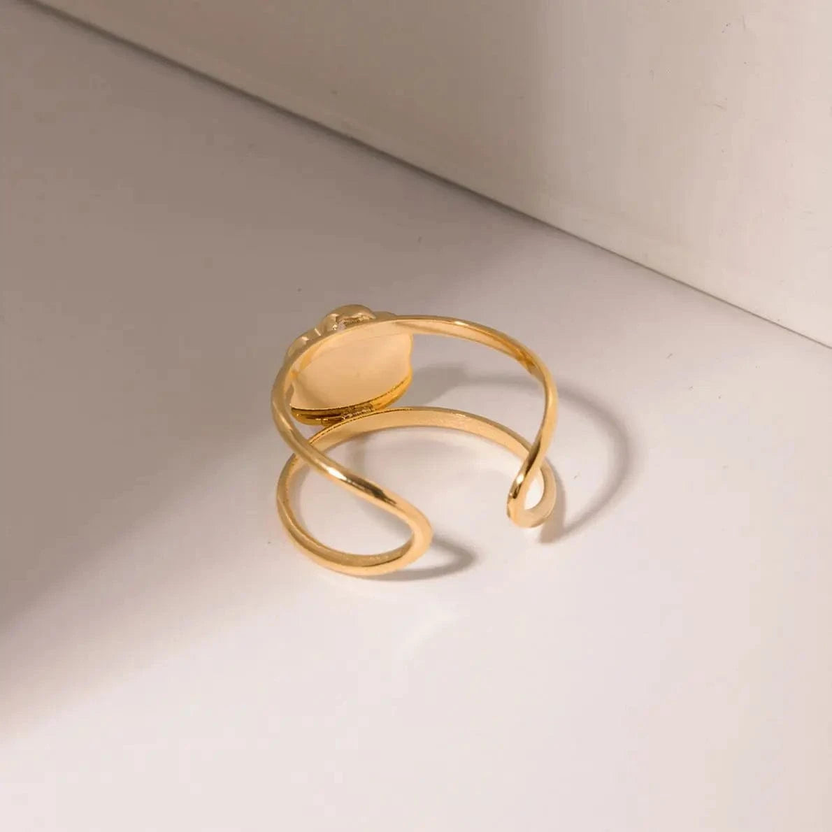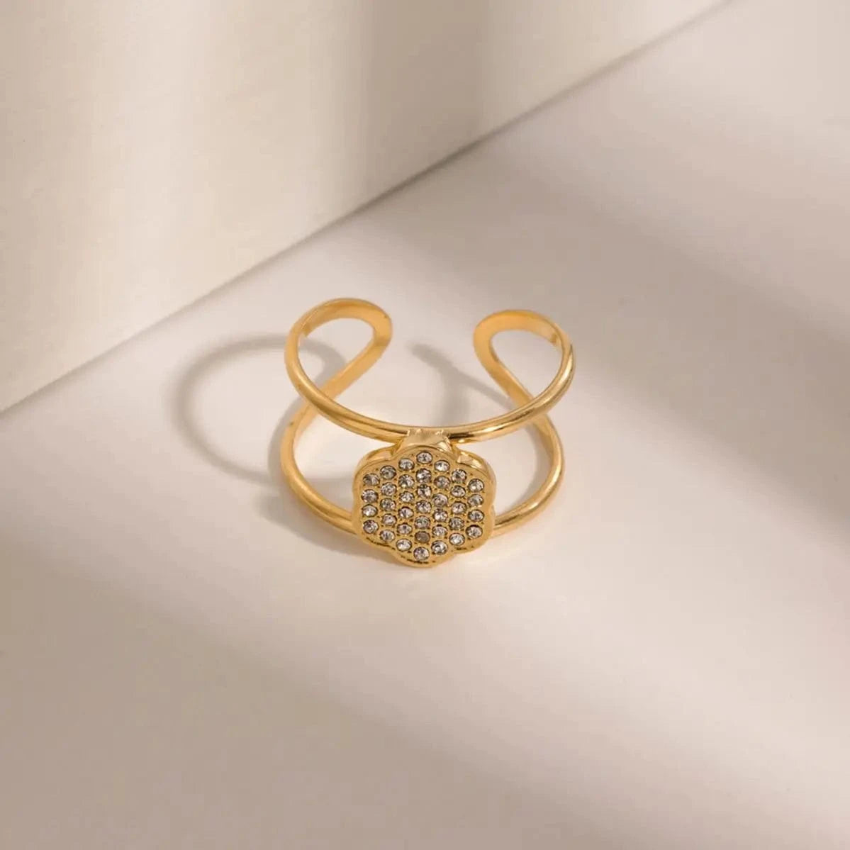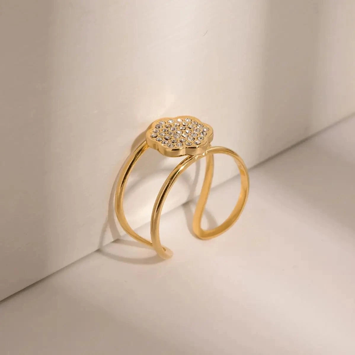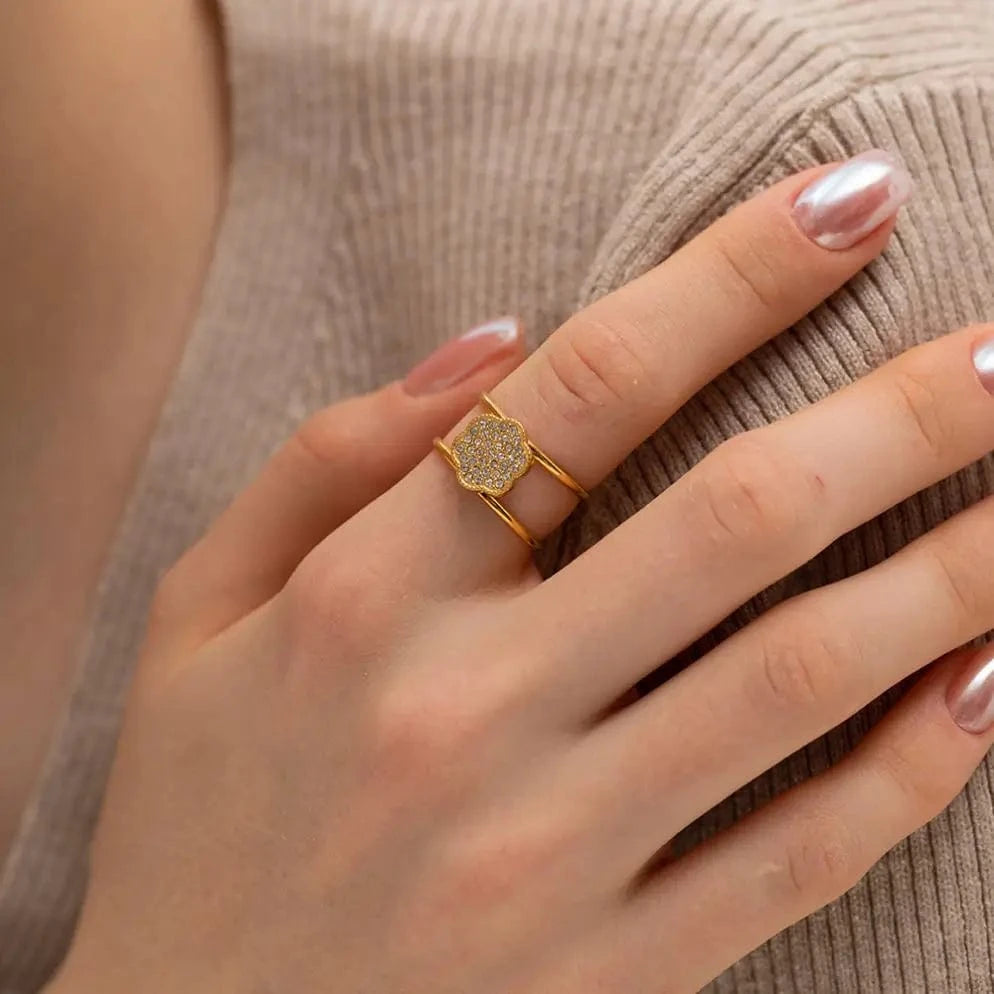 Bague en acier inoxydable plaquée or 18 carats, double couche, sertie d'oxydes de zirconium, étanche, ouverture, cadeau, R1999