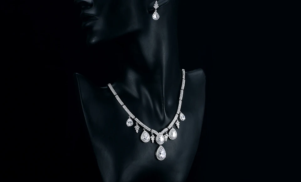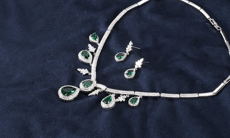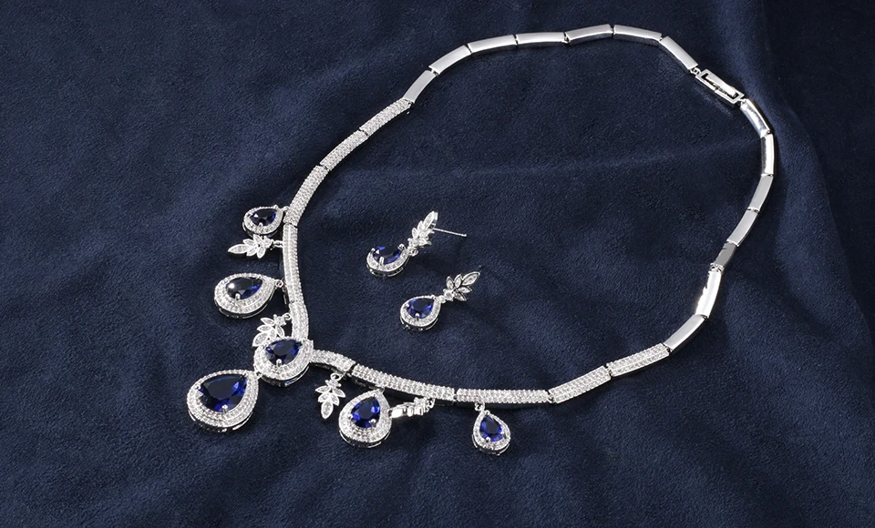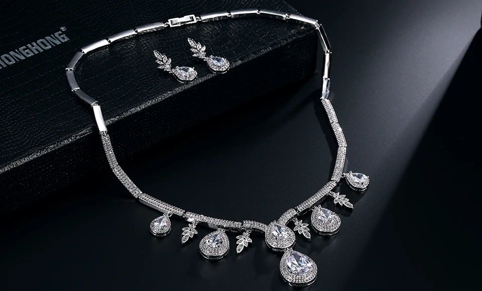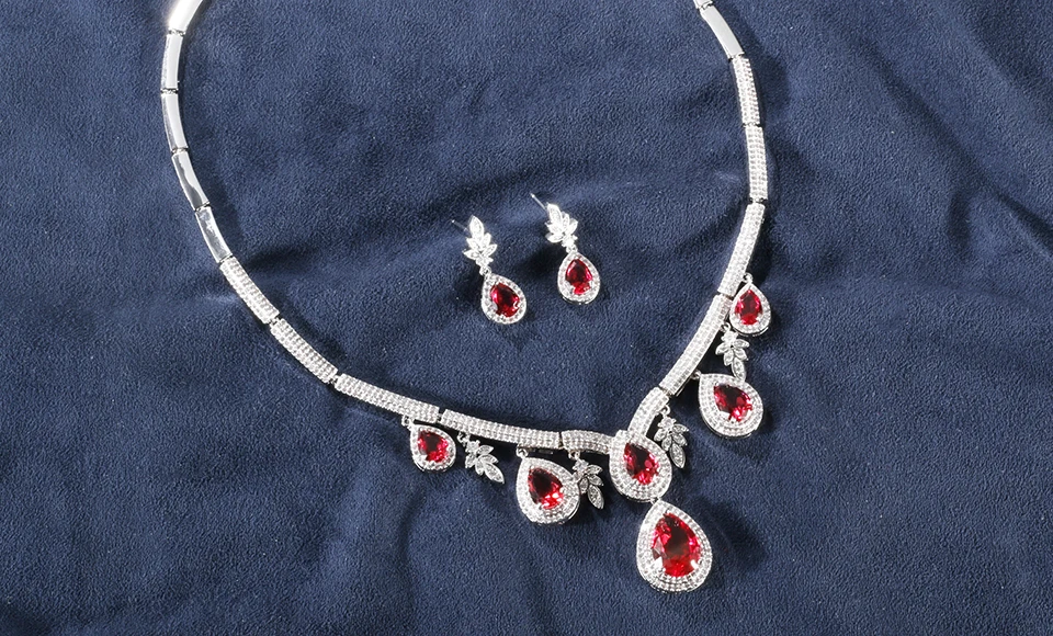 RAKOL S227 Parure de bijoux de mariée avec collier et boucles d'oreilles en zircon rose fuchsia