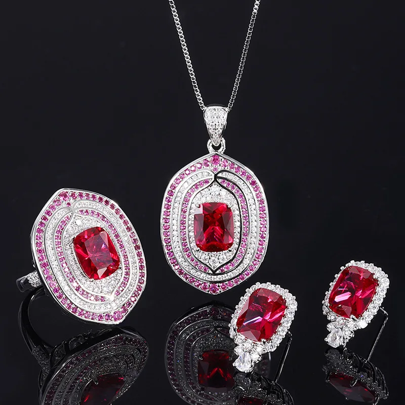 RAKOL ZS036 Ensemble de bijoux de mariage tendance et luxueux, plaqué rhodium, rubis et zircone, haute qualité, vente en gros, pour femmes, 2022