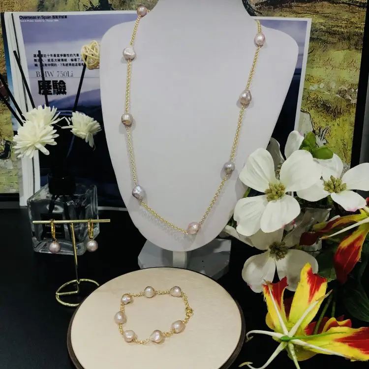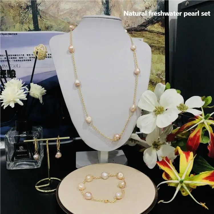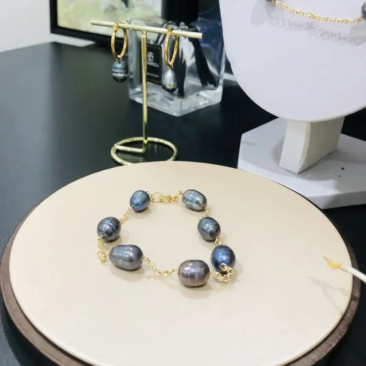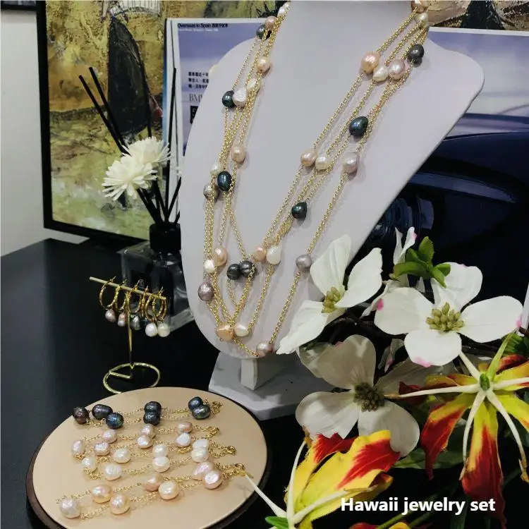 Ensemble de 2 colliers, bracelets et boucles d'oreilles en perles d'eau douce véritables, bijoux en or 2022, en laiton noir naturel, avec fleurs NGTC