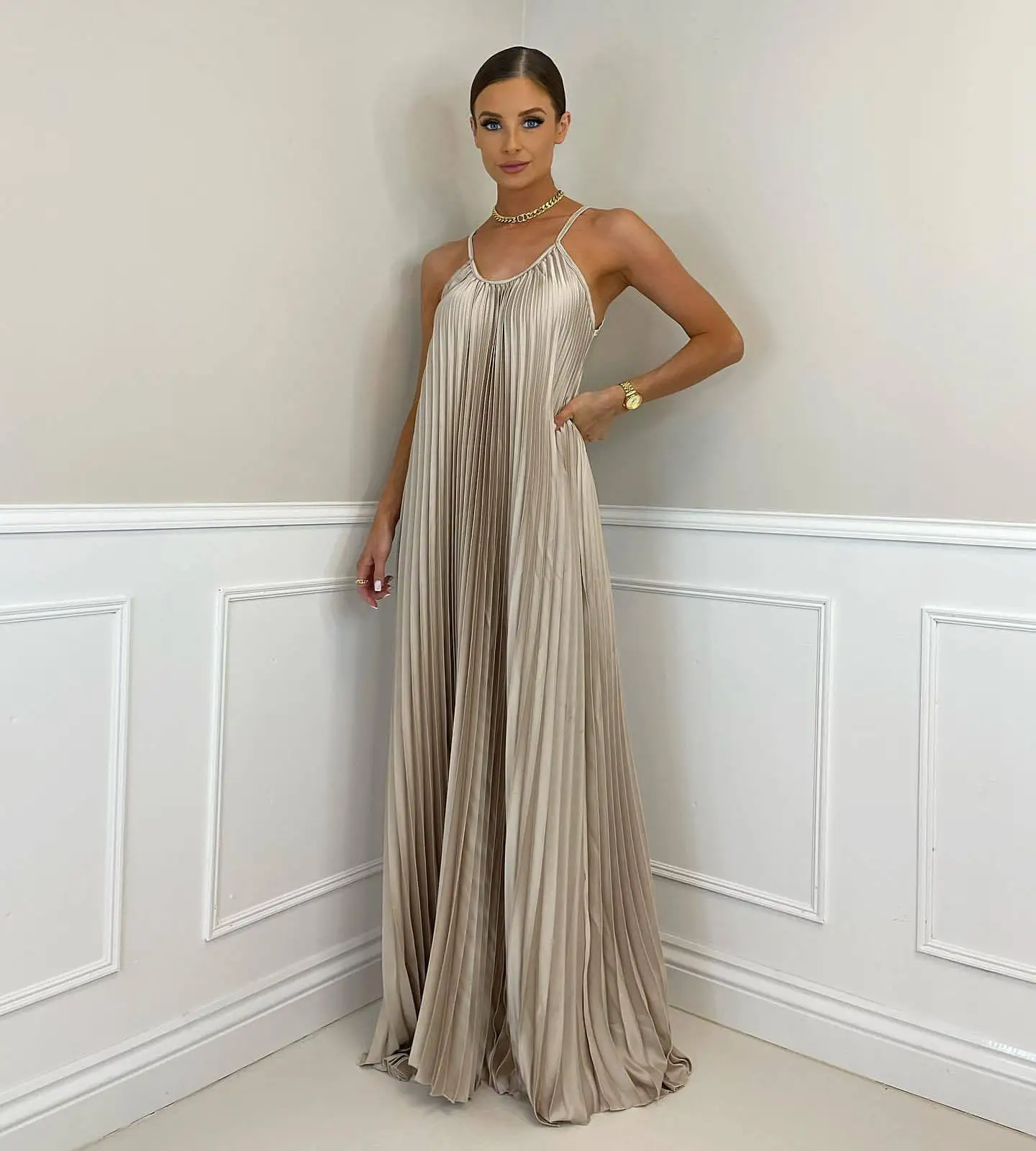 RedPeony Robe plissée décontractée et ample à dos nu pour femme, élégante, sans manches, tenue de plage, d'été, sexy, à bretelles spaghetti, tenue de soirée