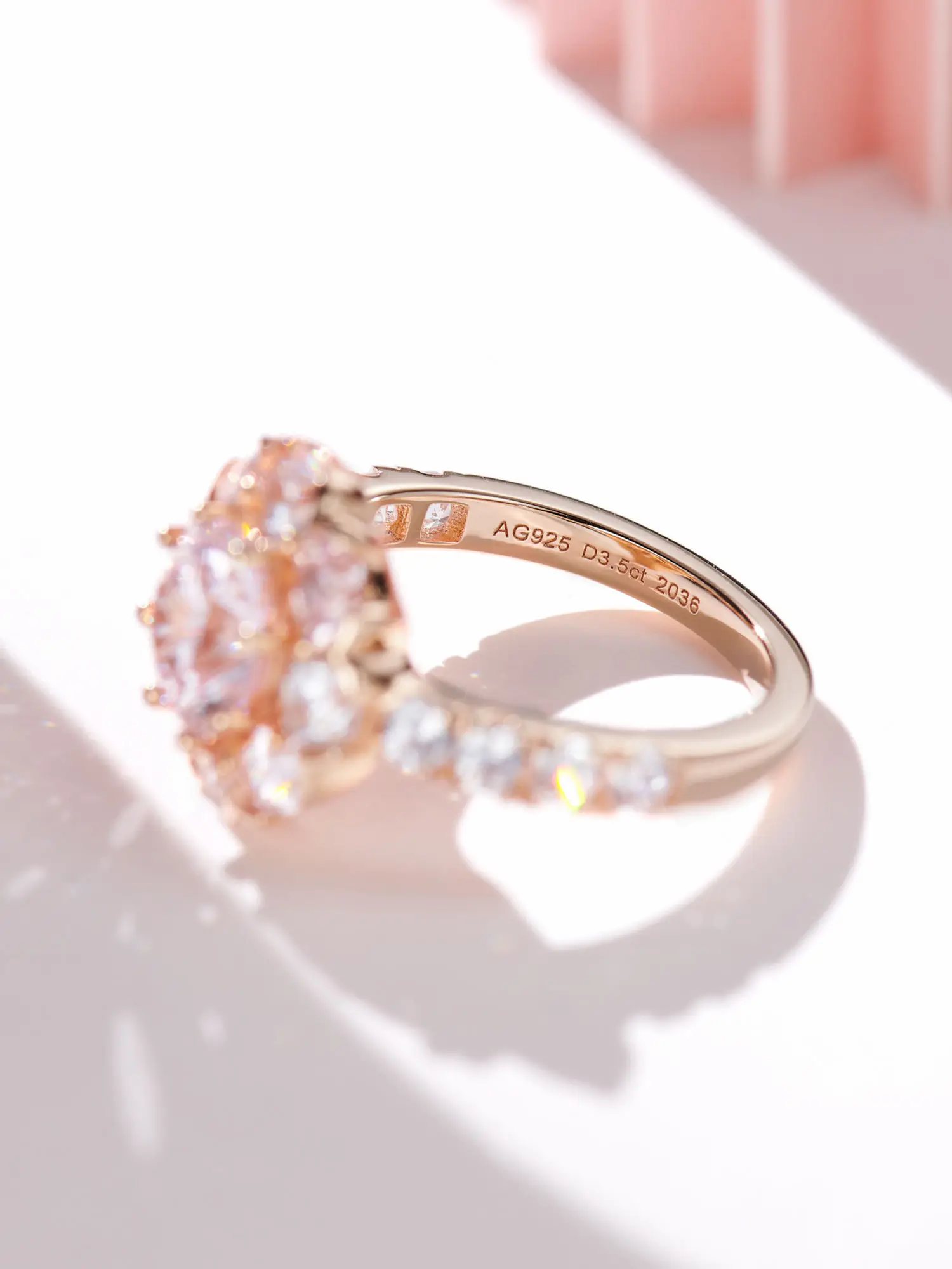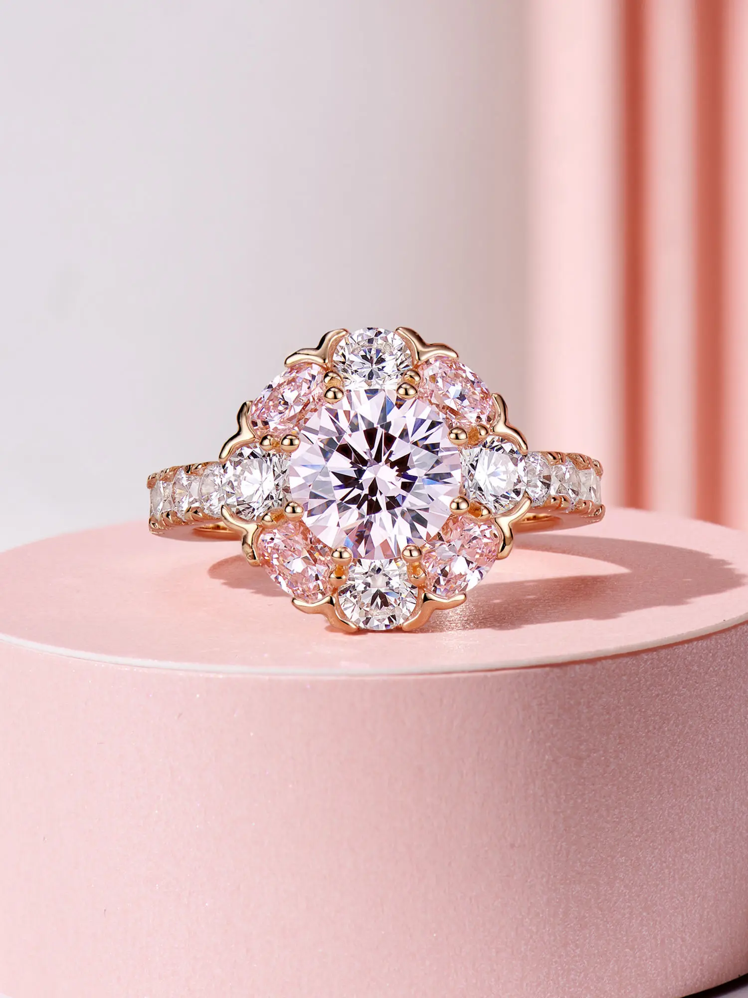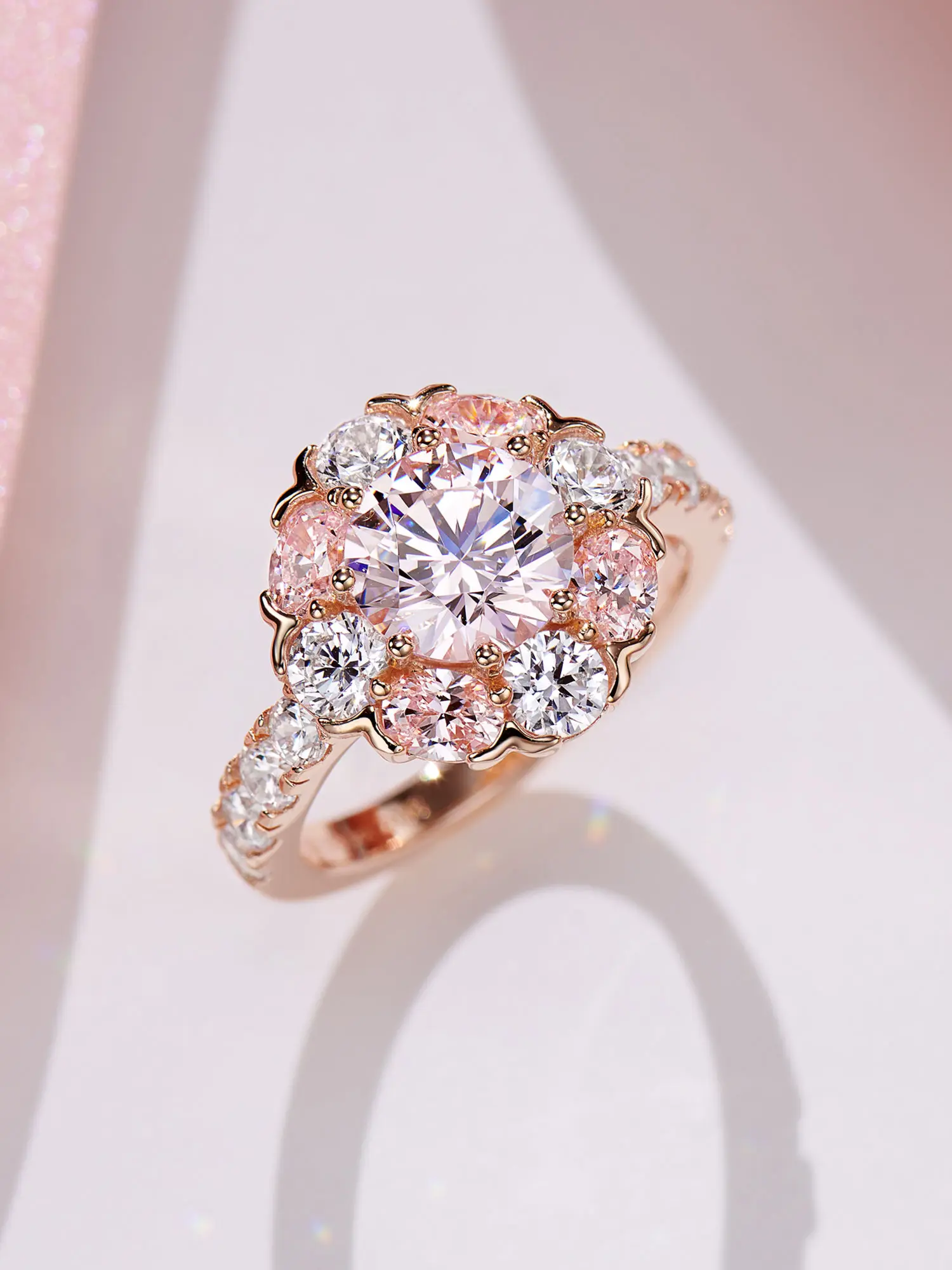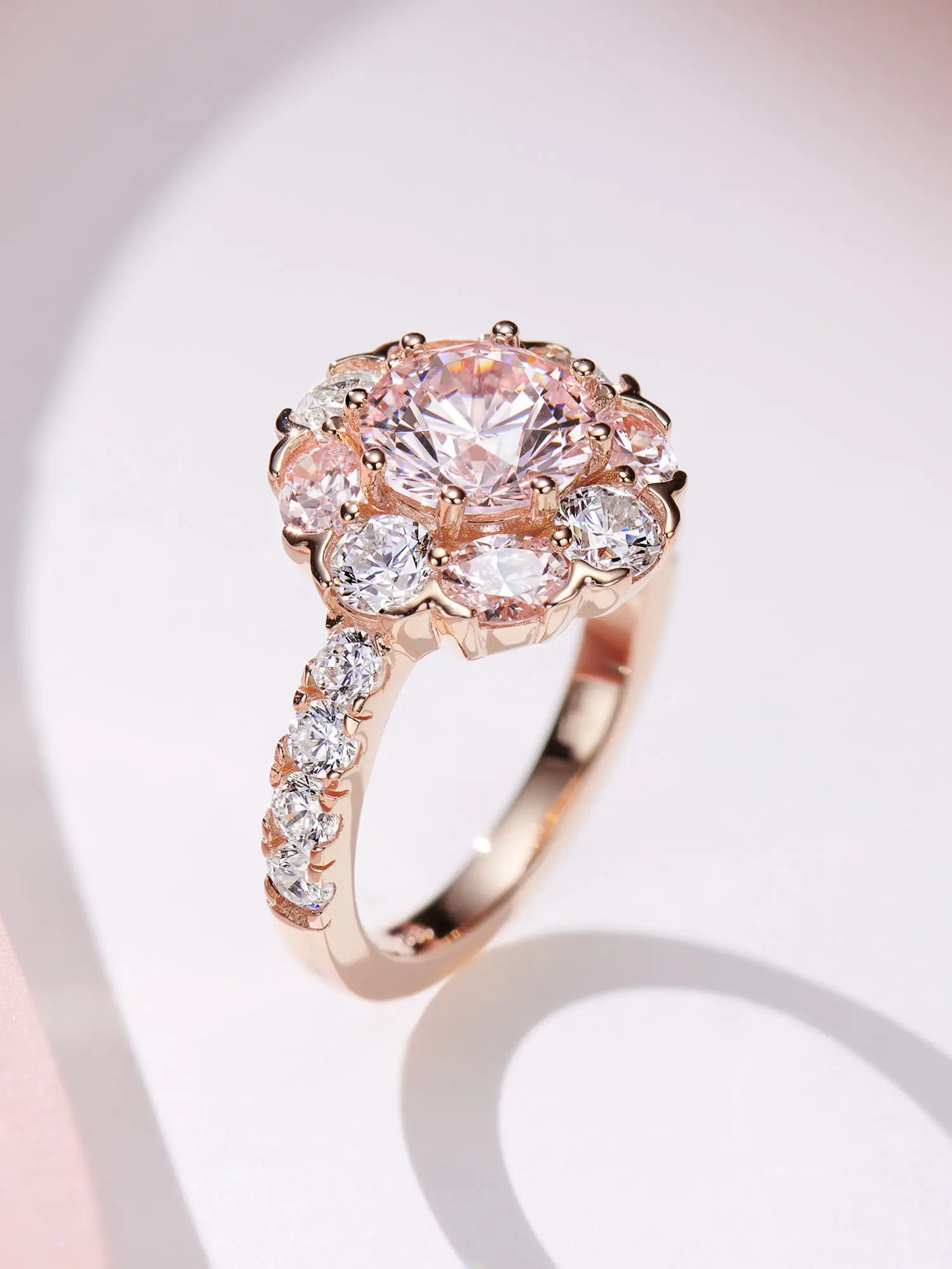 Bagues en argent sterling 925 plaqué or rose avec pierres précieuses roses et halo de fleurs Rochime, bijoux tendance pour femmes
